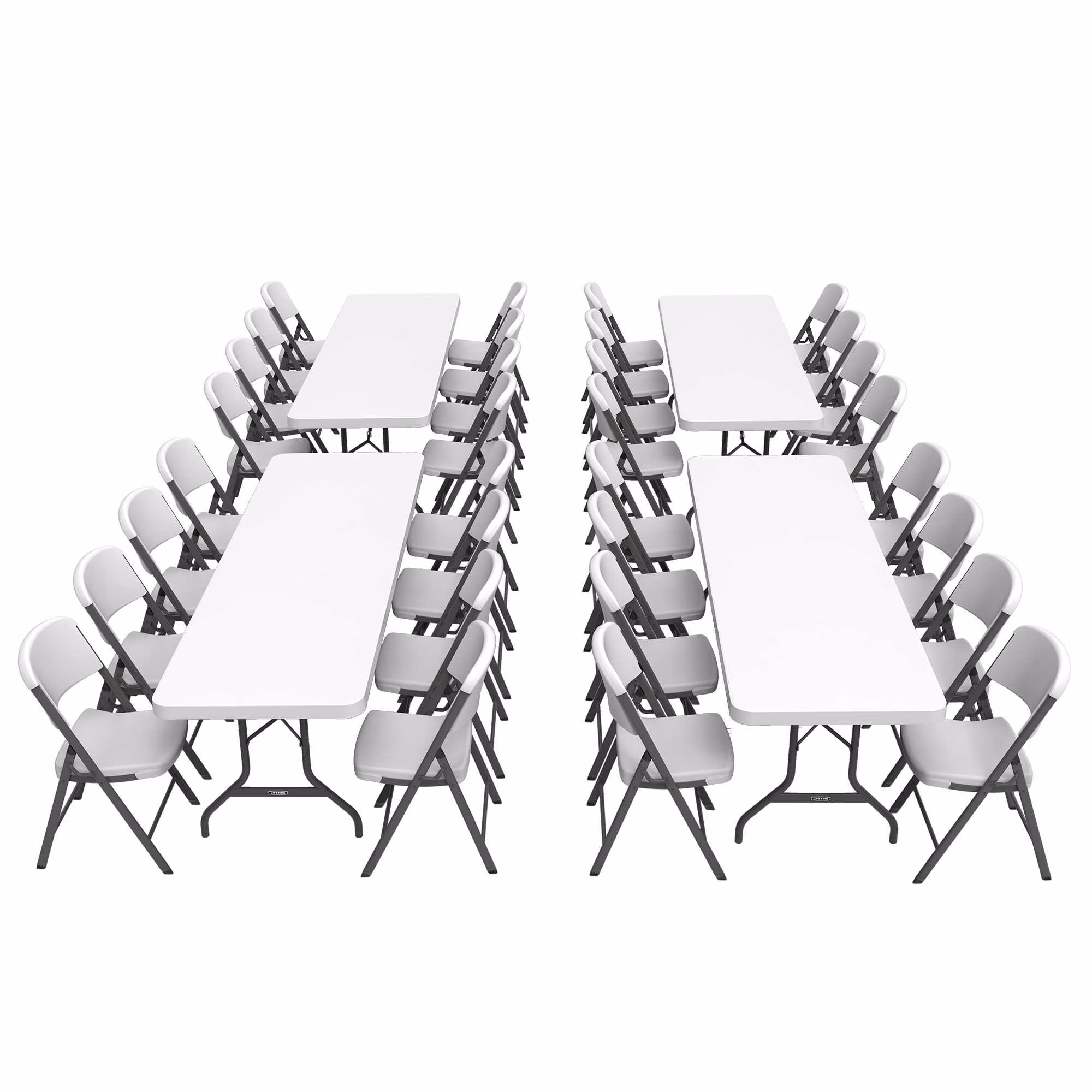 Lifetime Combo Set of (4) 8-Foot Rectangle Folding Tables & (32) Chairs, Indoor/Outdoor Use, White (80147)