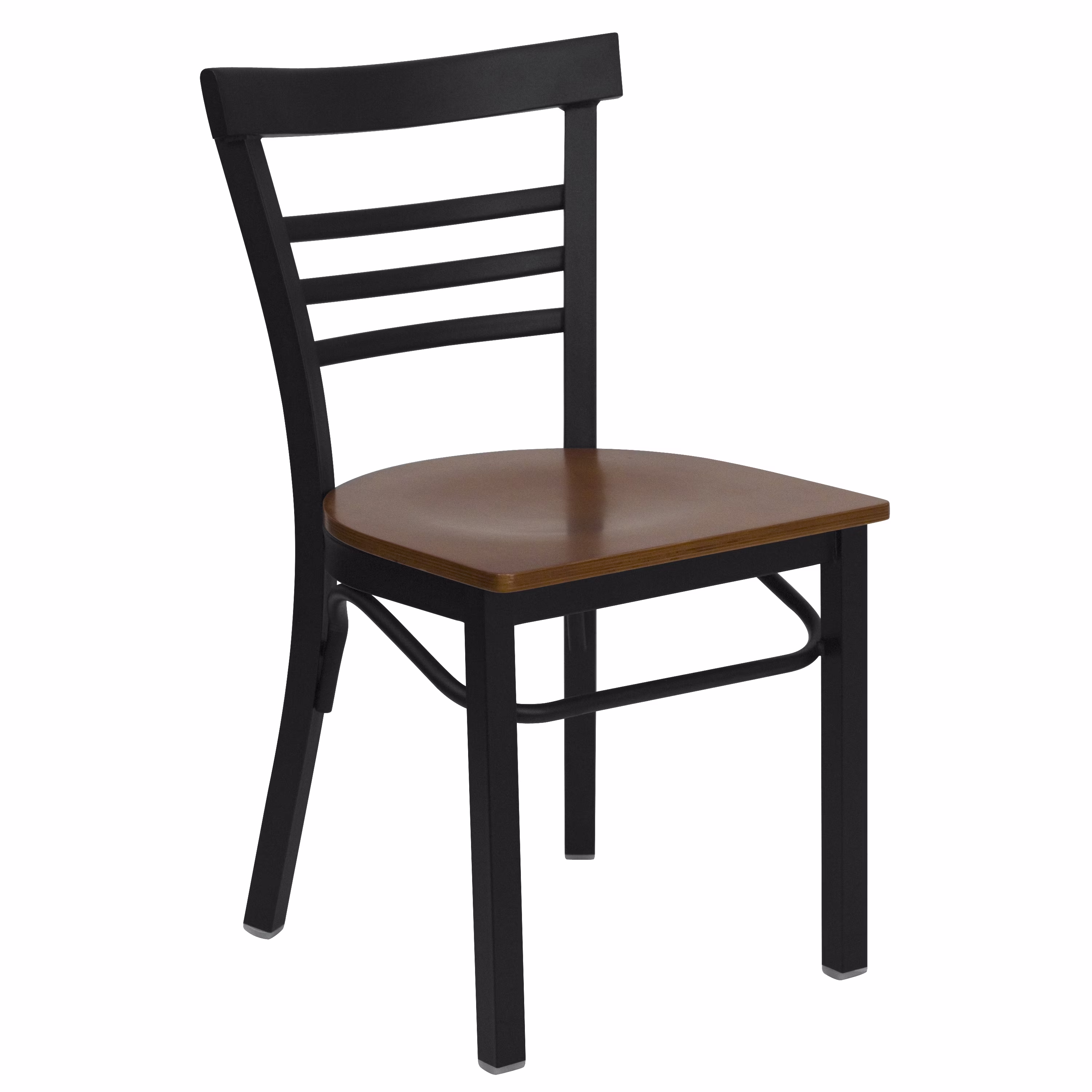 Flash Furniture HERCULES Series Black Three-Slat Ladder Back Metal Restaurant Chair - Cherry Wood Seat