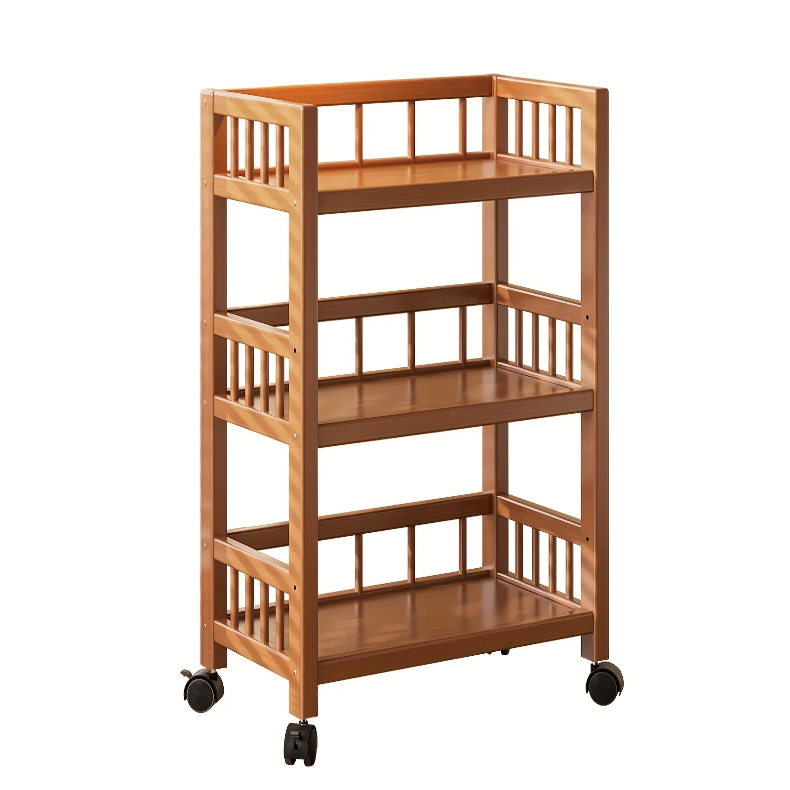 1pc Bamboo Rolling Kitchen Sideboard Cart with Drawers & Shelves - Multi-Functional Storage Organizer on Wheels, Lockable for Easy Mobility, Ideal for Home Decor and Portable Bars