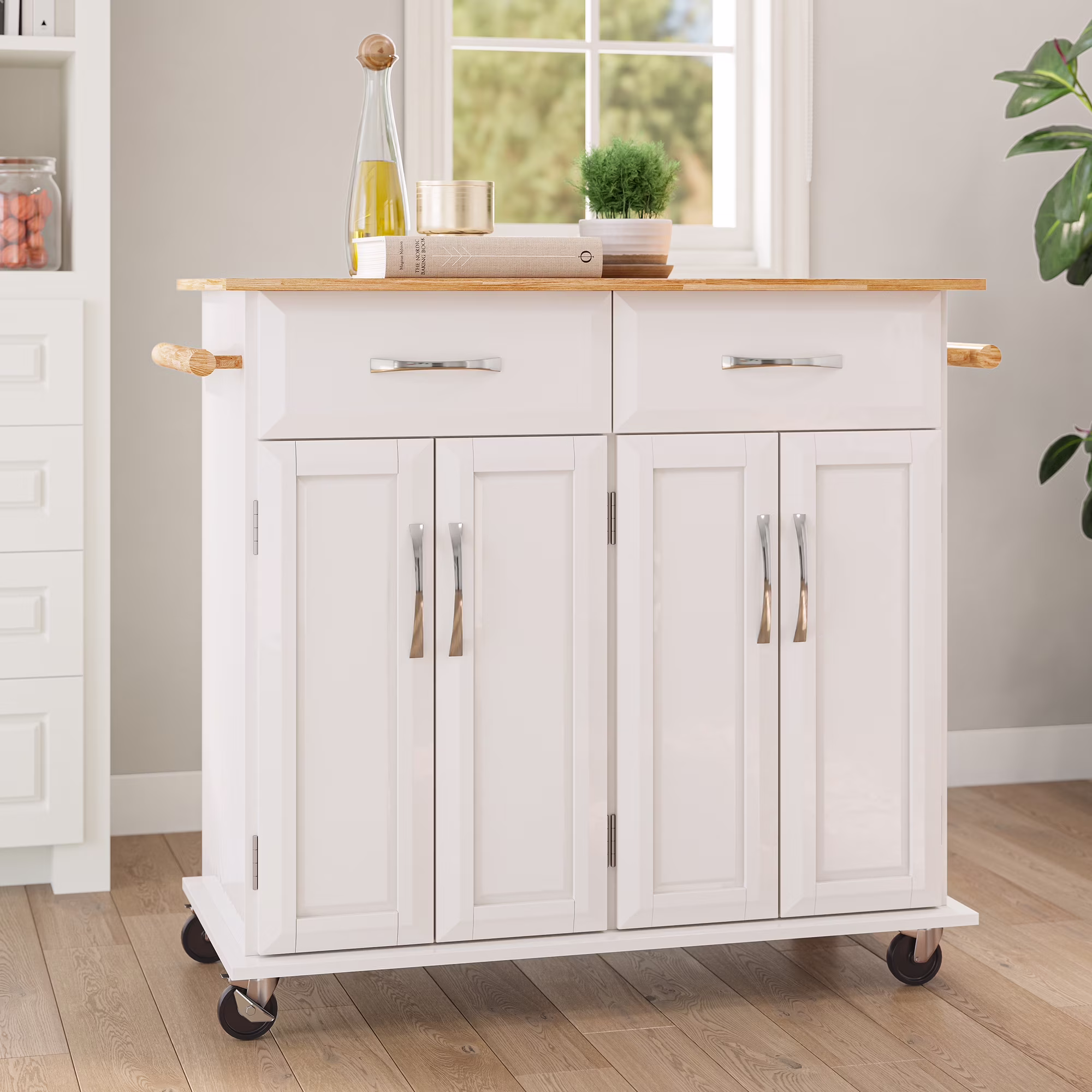Walsunny 40" Kitchen Islands Carts with Storage Drop Leaf Countertop on Wheels Rolling Microwave Utility Carts with 3 Drawers 1 Storage Cabinets,White