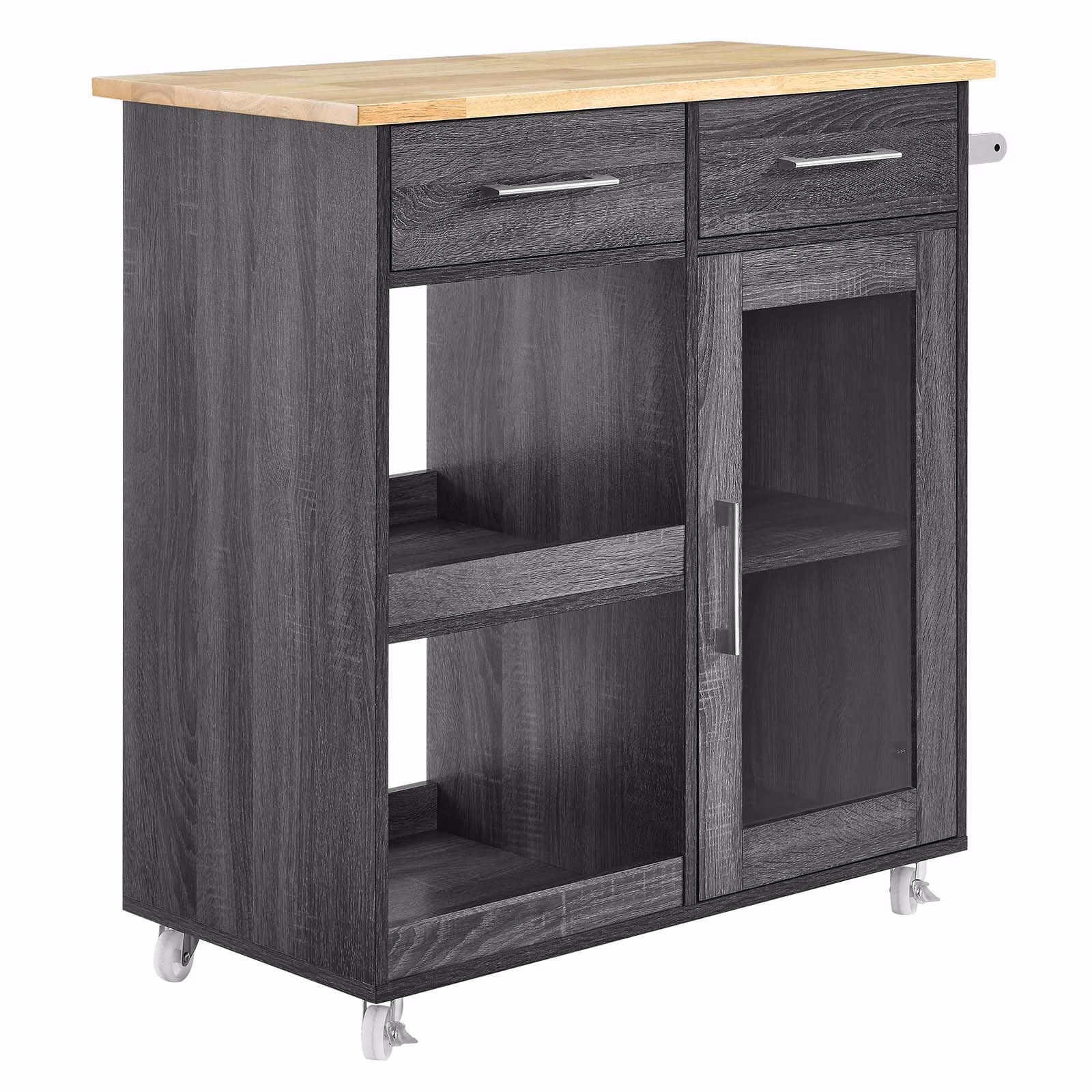 Culinary Rolling Kitchen Cart with Storage in Charcoal Natural - 3 Tiers Kitchen Island on Wheels with Towel Bar, Functional as a Coffee Station, Bar Cabinet or Butcher Block Island
