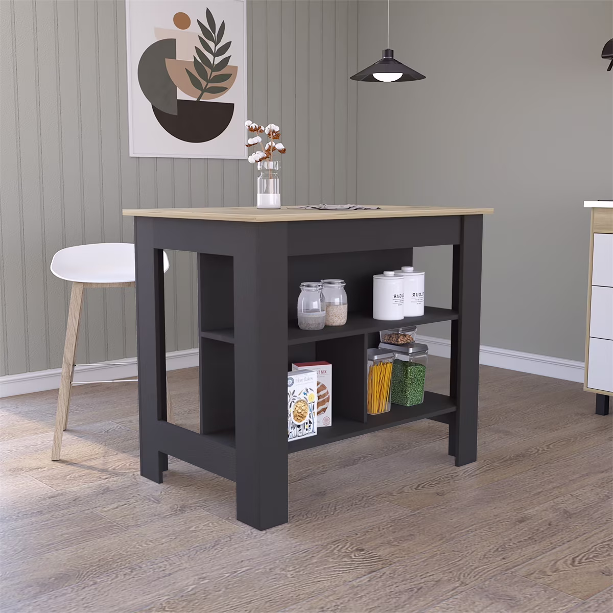 Dtwnek Kitchen Island with 3 Shelves, Black