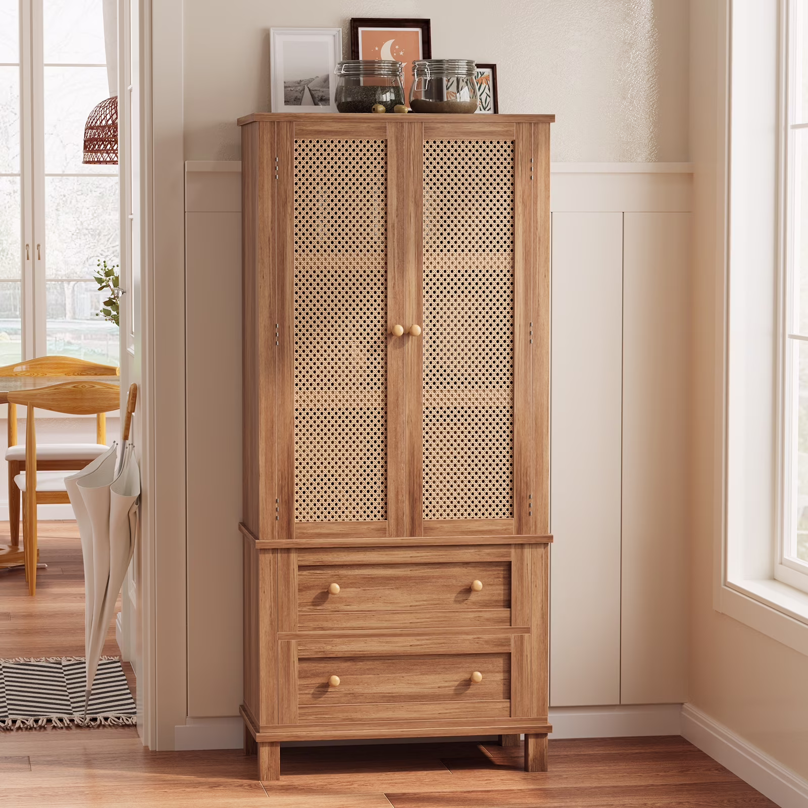 Yiwa 64" Tall Freestanding Kitchen Pantry Storage Cabinet for Living Room Home Small Space