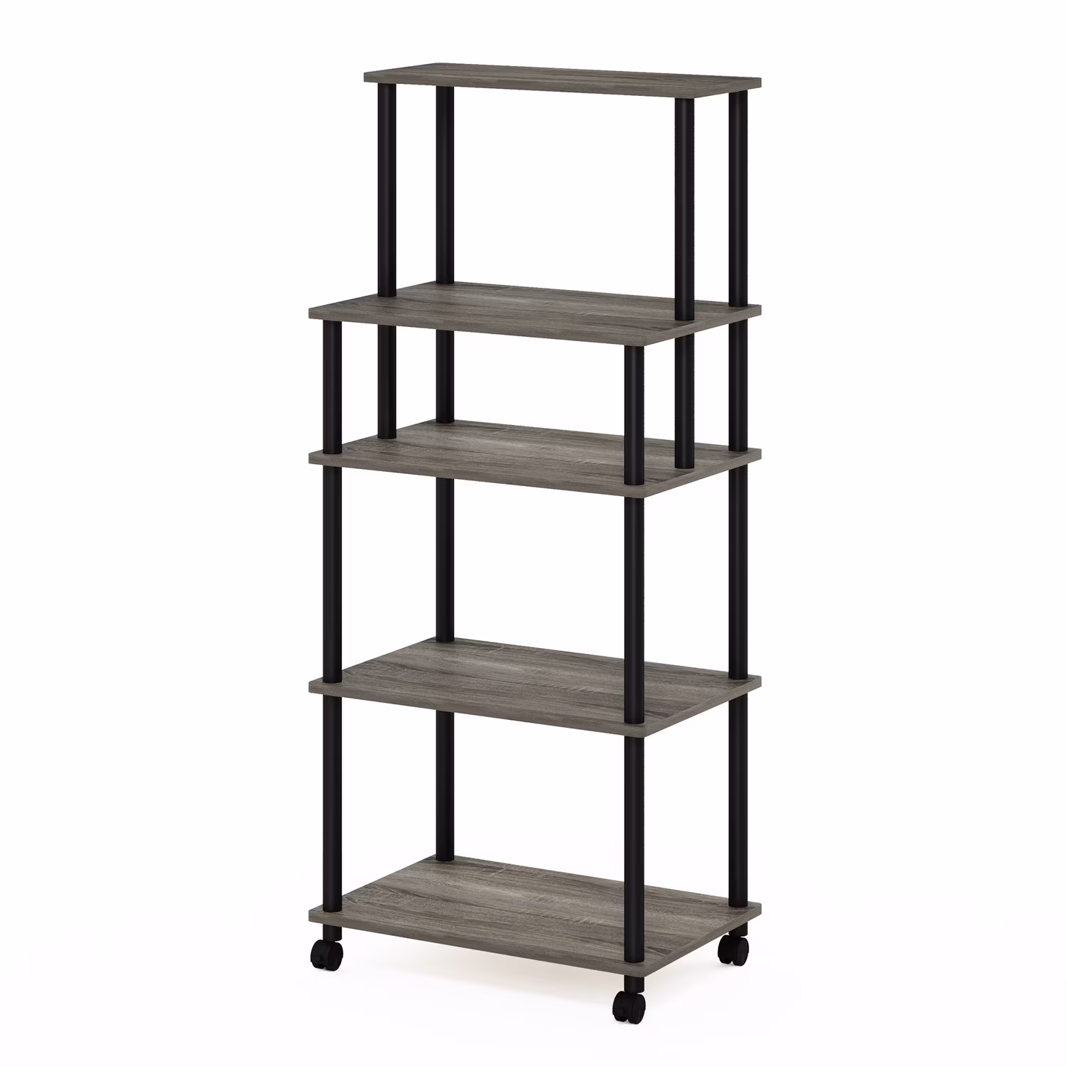 Furinno Turn-N-Tube 5-Tier Toolless Kitchen Storage Cart, French Oak Grey/Black