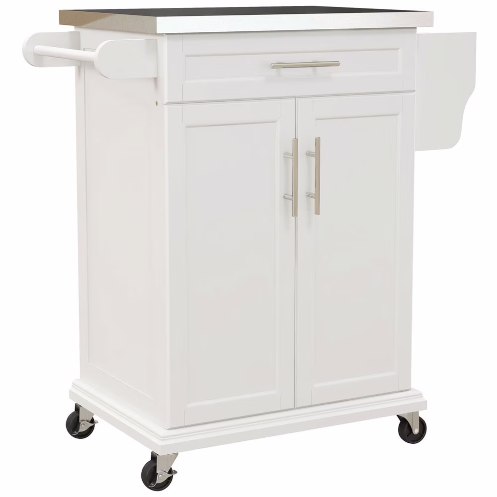 Barara King Kitchen Island,Rolling Island on Wheels, Kitchen Island Cart with Drawer, Towel Rack & Stainless Steel Countertop, Cream White