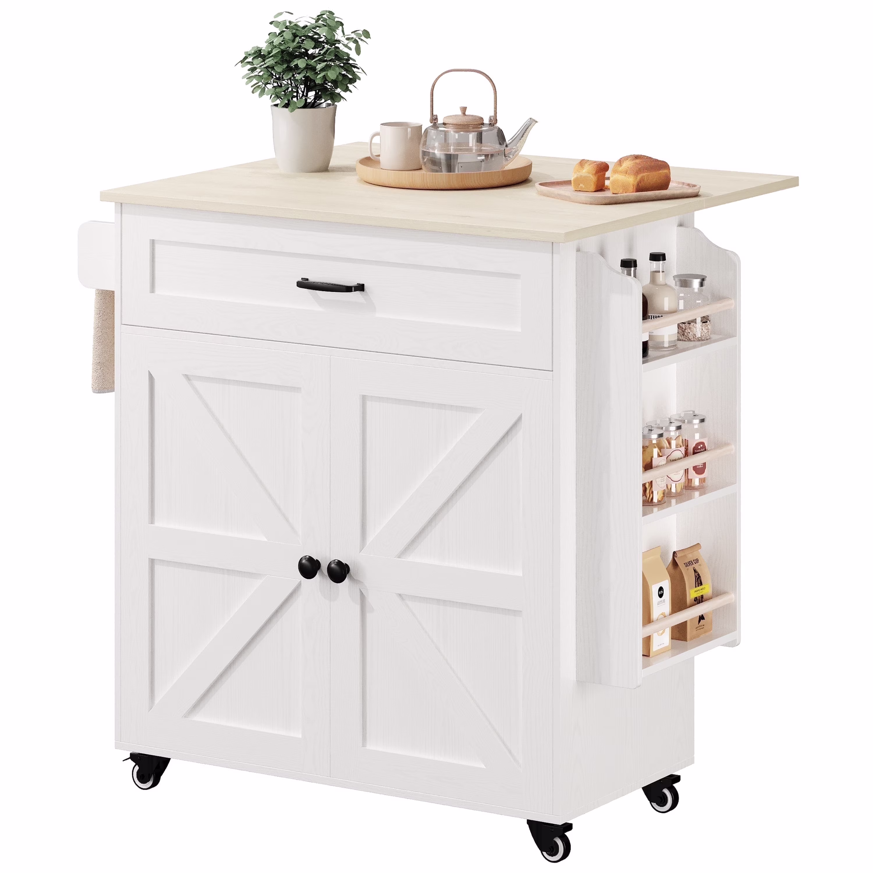 IRONCK 31.5" Rolling Kitchen Island Cart with Drop Leaf, Drawer, Adjustable Storage Cabinet, Spice Rack and Towel Holder