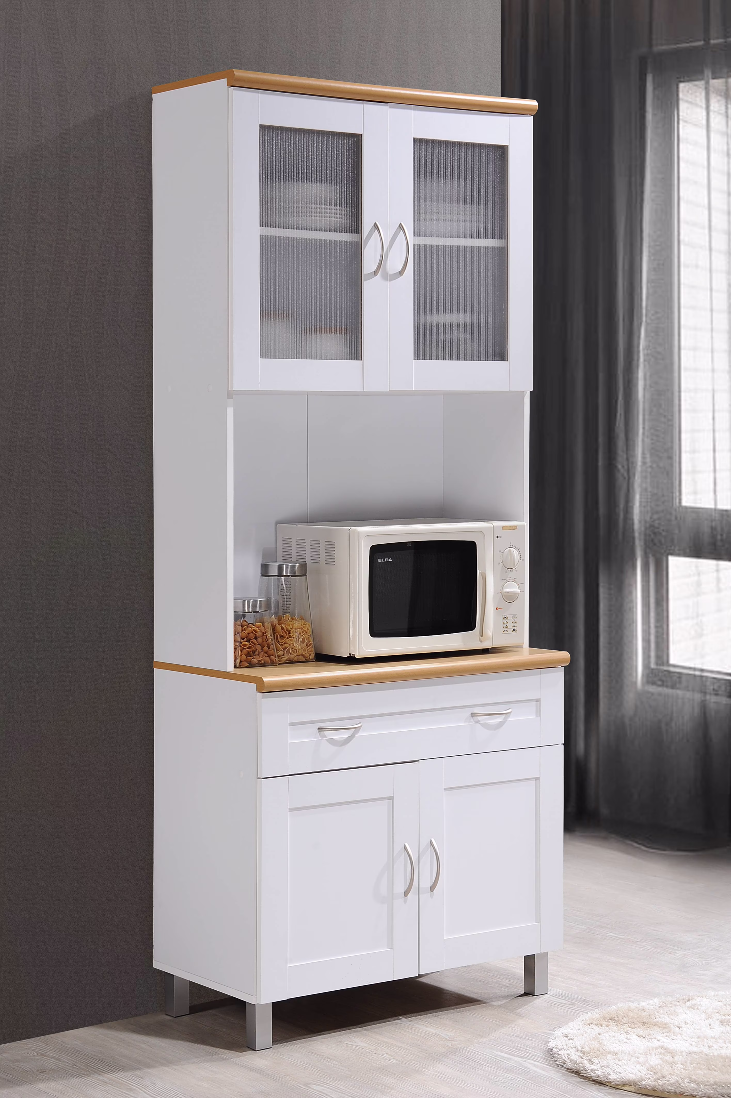 Hodedah Tall Free Standing Kitchen Cabinet, White