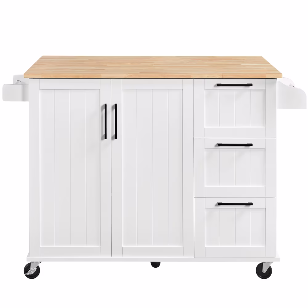 Renwick Rolling Kitchen Cart with Cabinets and Drawers, White