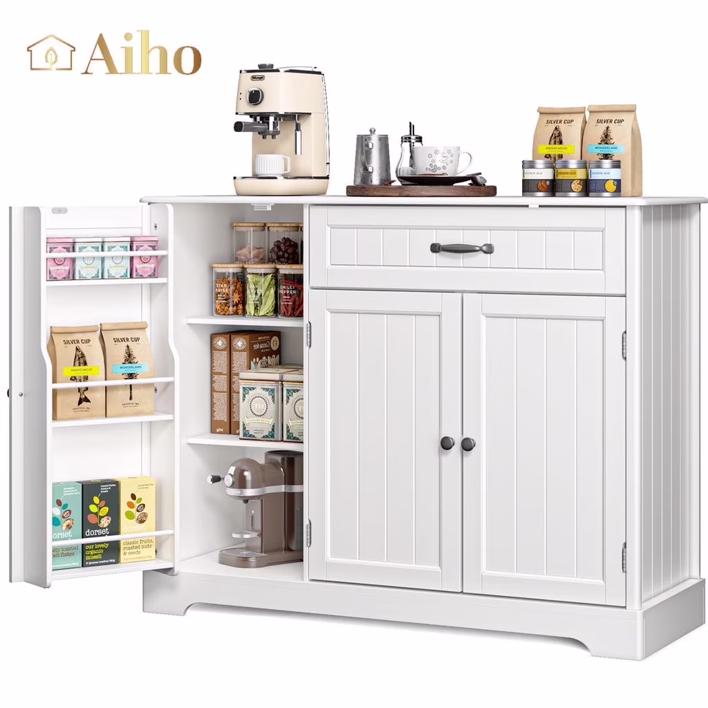 Aiho Kitchen Pantry Cabinet with Doors and Shelves, Coffee Bar Cabinet with Storage, Sideboard Buffet Cabinet for Kitchen, Dining Room, Living Room - White