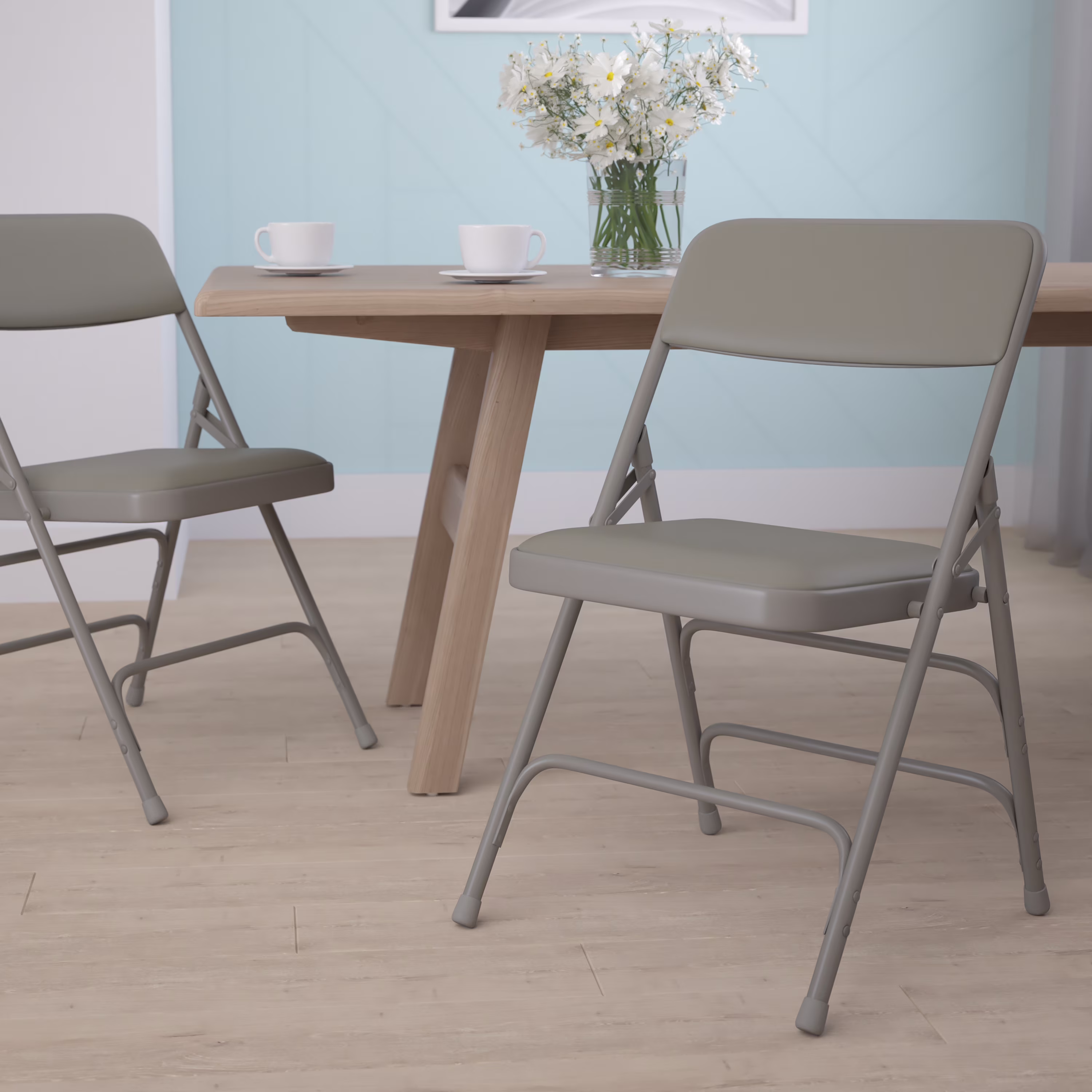Flash Furniture HERCULES Series Curved Triple Braced & Double Hinged Gray Vinyl Metal Folding Chair