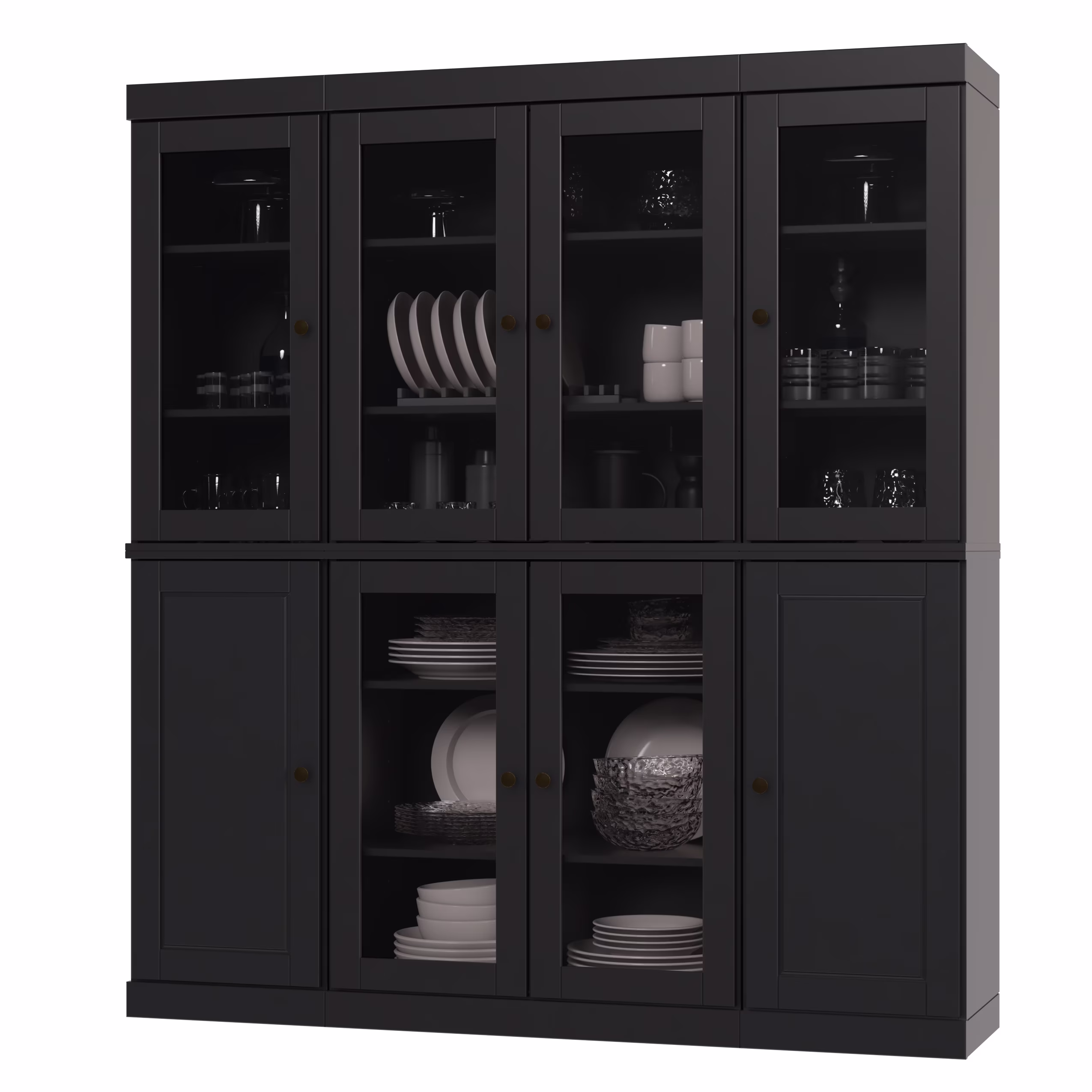 Palace Imports 100% Solid Wood Kitchen Pantry Storage Cabinet with Glass Doors and Adjustable Shelves, Black