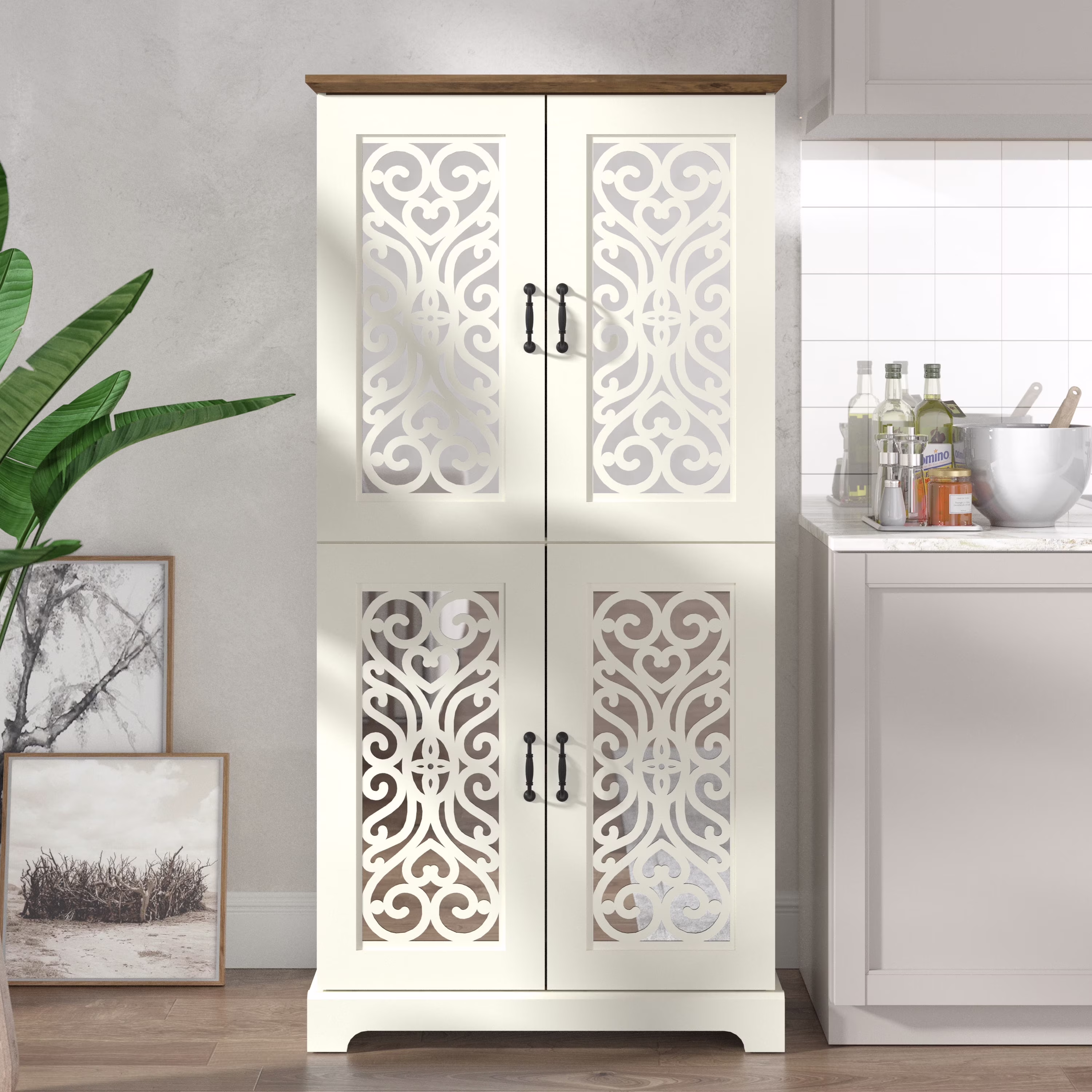 Galano Angelyca 4 Door Kitchen Pantry - Ivory with Knotty Oak