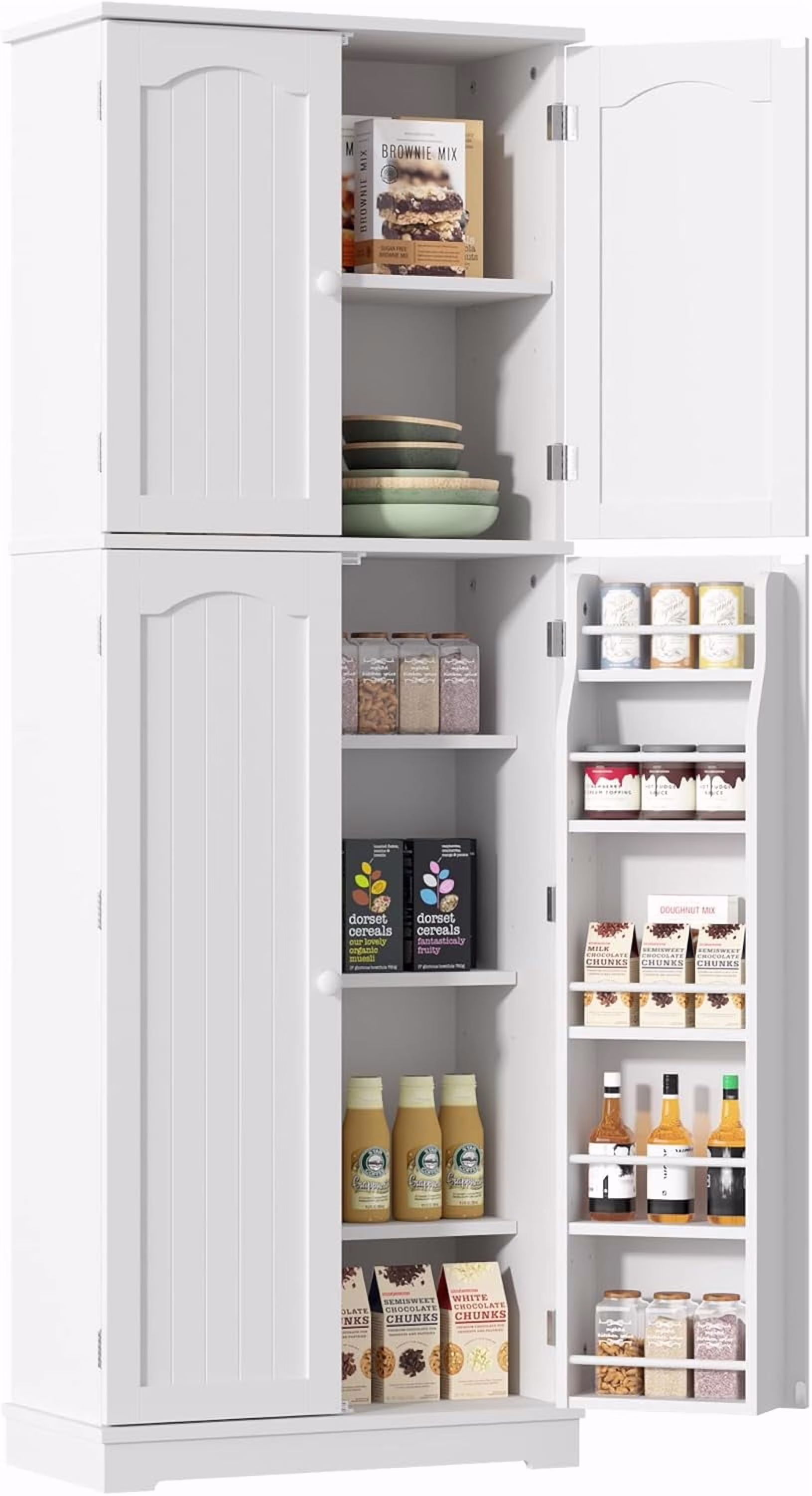 Yusong 64'' Kitchen Storage Cabinet, Tall Pantry Storage Cabinet with Doors and Shelves, Food Free Standing Pantry for Kitchen Dining Living Room, White