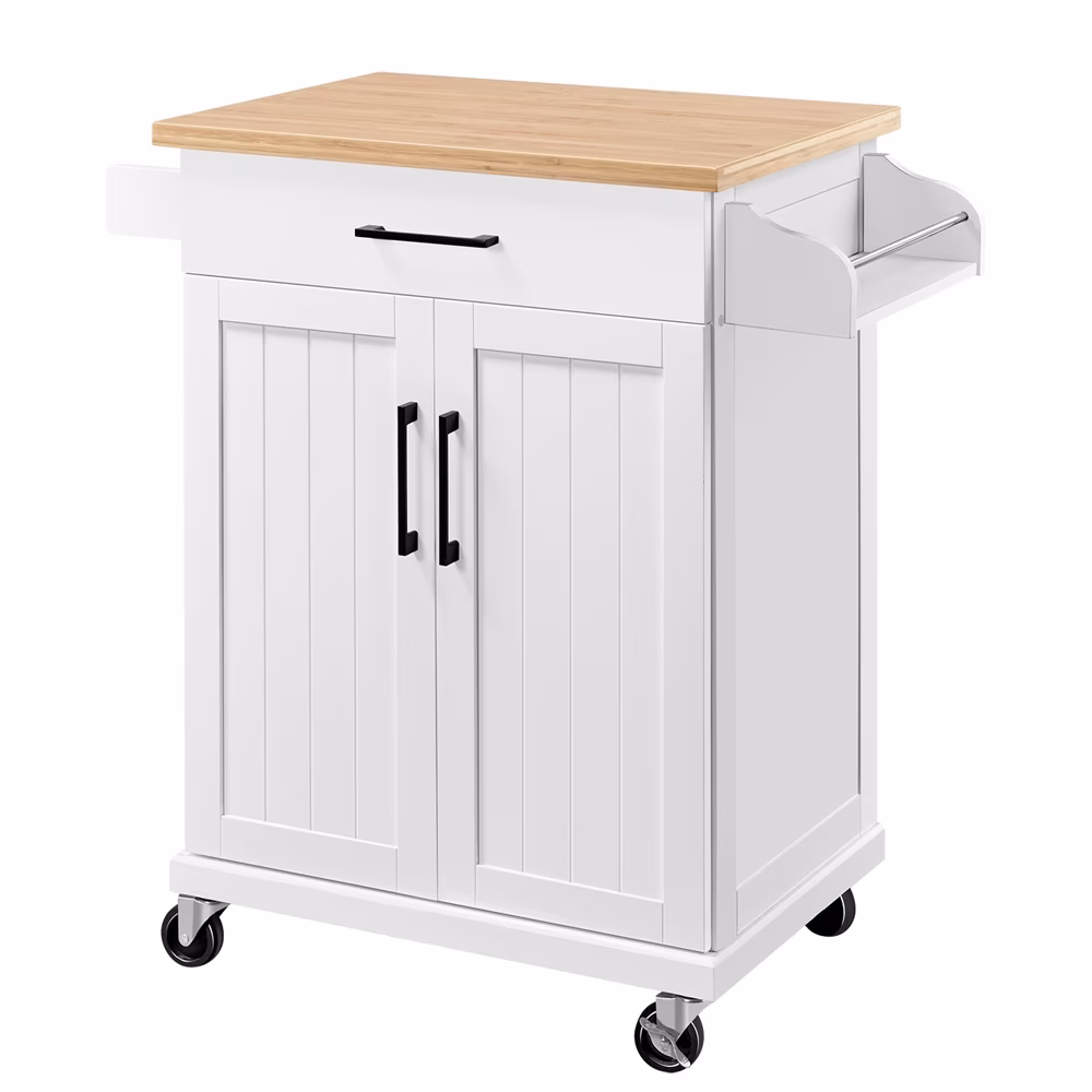 Renwick Rolling Kitchen Cart with Storage and Spice Rack, White