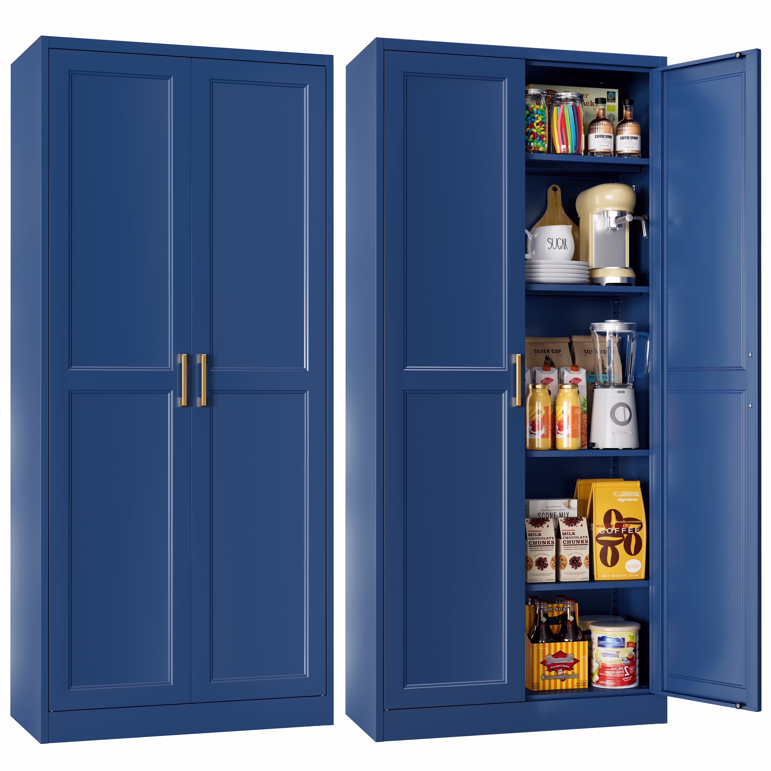 Polup 71" H Modern Metal Kitchen Pantry Storage Cabinet with Adjustable Shelves and Doors Blue