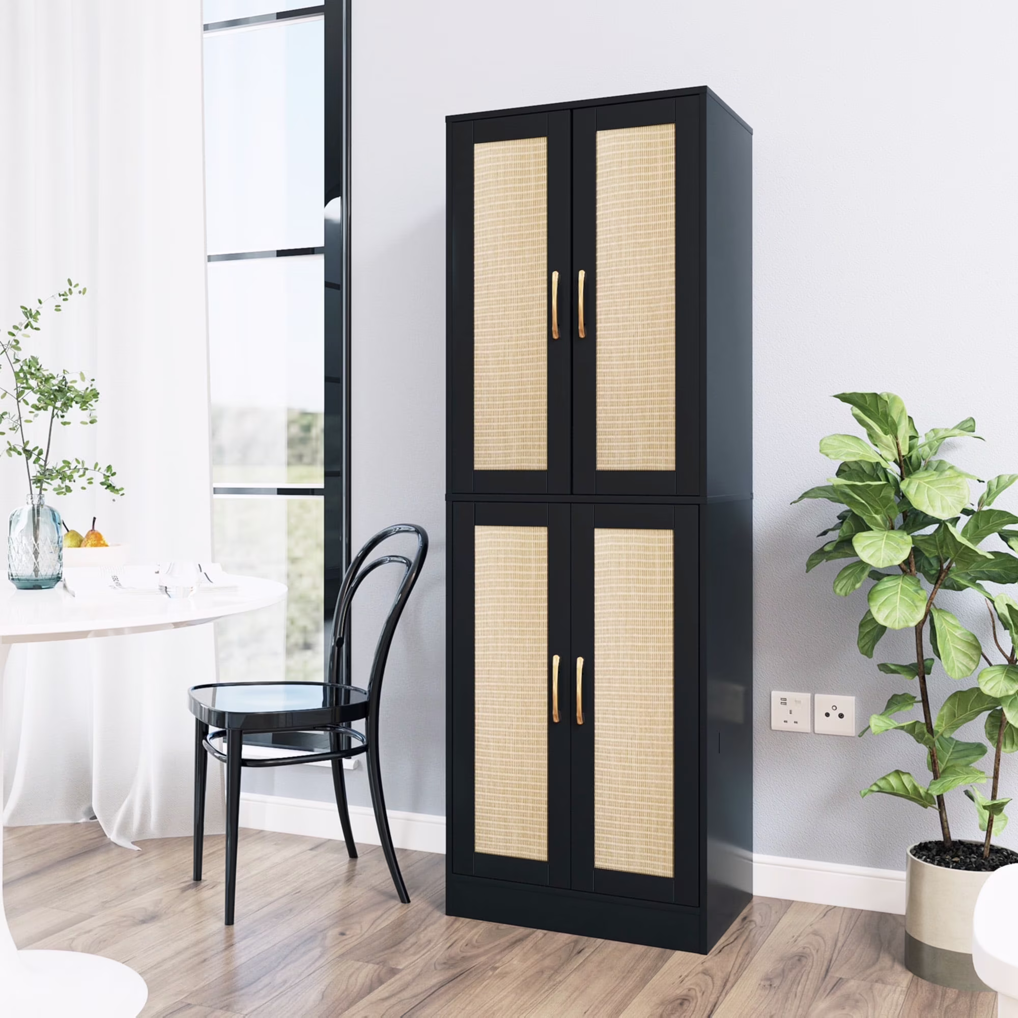 BOCVKENN Storage Cabinet - Kitchen Pantry Cabinet, Tall Pantry Storage Cabinet Freestanding with 4 Rattan Doors and Adjustable Shelves, Cupboard Cabinet for Dining Living Room, Laundry, Bathroom