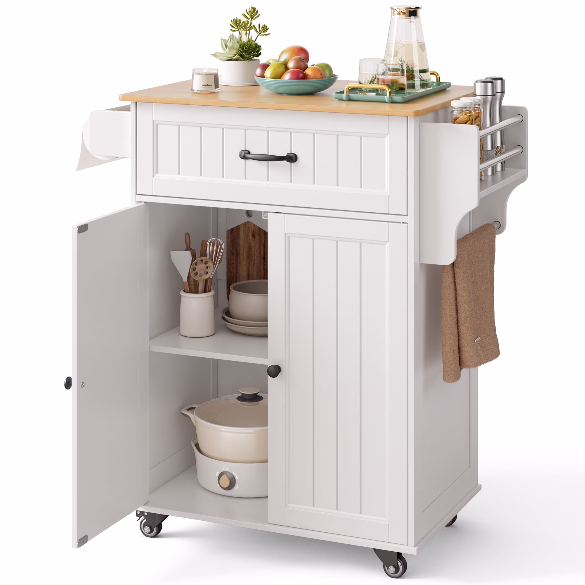 Asofer 33.6" Kitchen Island Cart with Storage, Adjustable Shelf & Drawer, for Dining Room, White