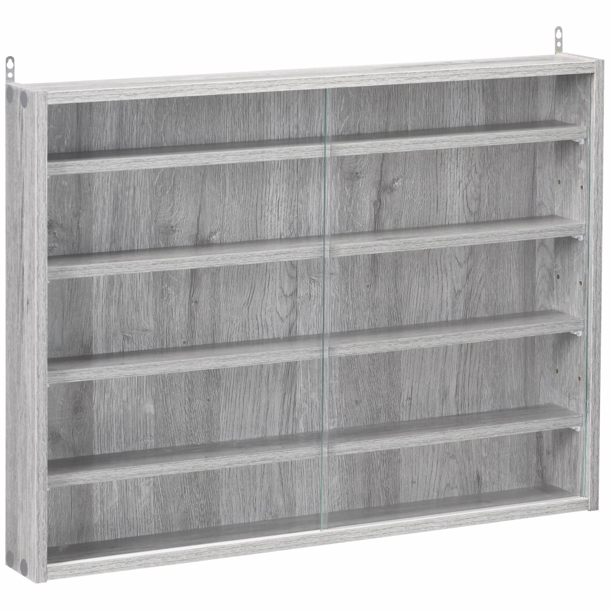 DUOSONG 5-Tier Display Cabinet, Glass Display Case With 2 Doors And Adjustable Shelves, Wall-Mounted, Grey Gray Glass Furniture Primary Living Space Cabinets