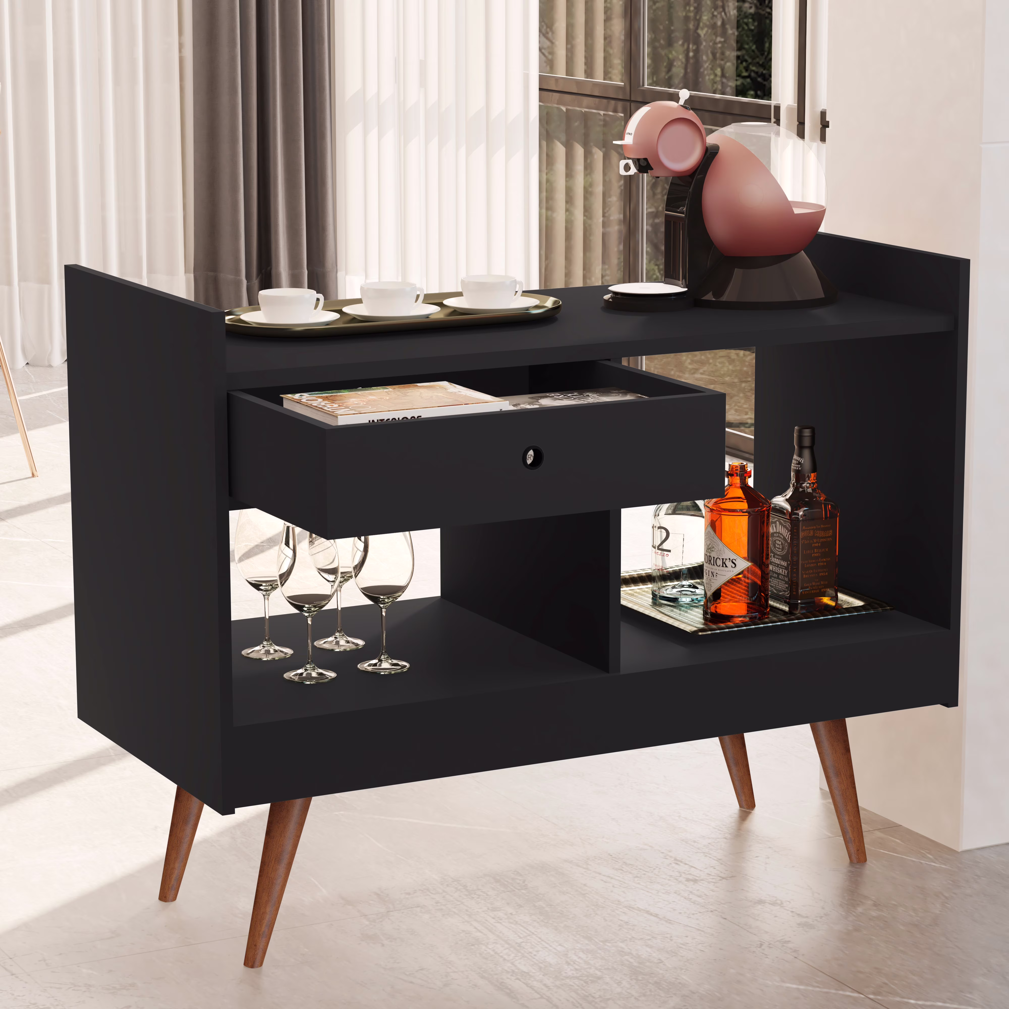 Ember Interiors Oxford Black Modern Bar Cabinet with Wine Storage, Drawer & Open Shelves �C Compact Design for Living Room or Kitchen