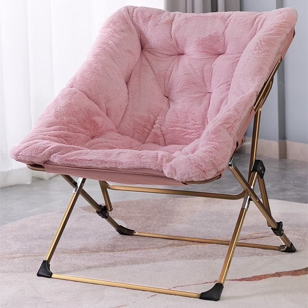 OAKHAM Comfy Saucer Chair, Folding Faux Fur Lounge Chair for Bedroom and Living Room, Flexible Seating for Adults, X-Large, Pink