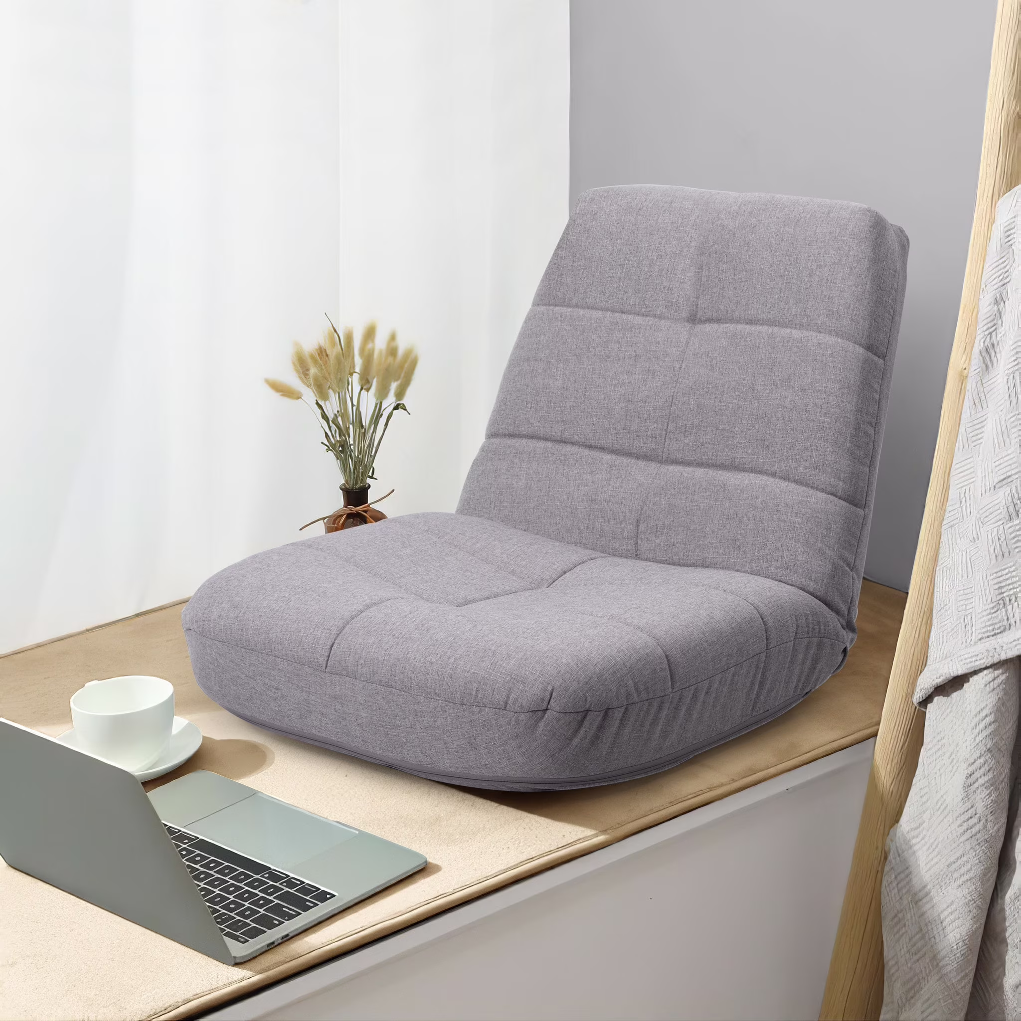 VredHom Adjustable Padded Floor Folding Chair in Gray