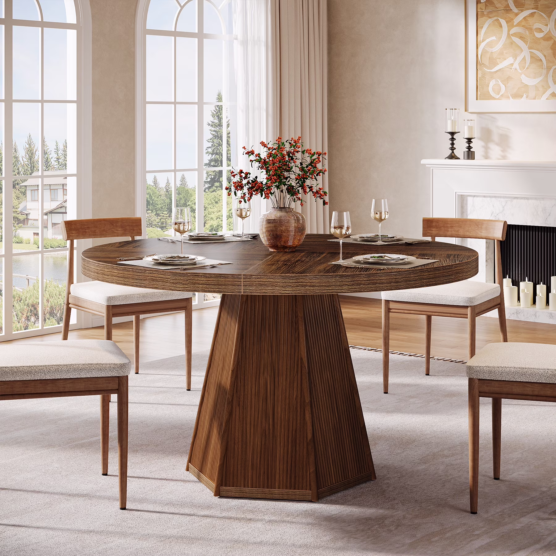 Tribesigns 47-Inch Round Dining Table for 4, Farmhouse Industrial Wooden Kitchen Table