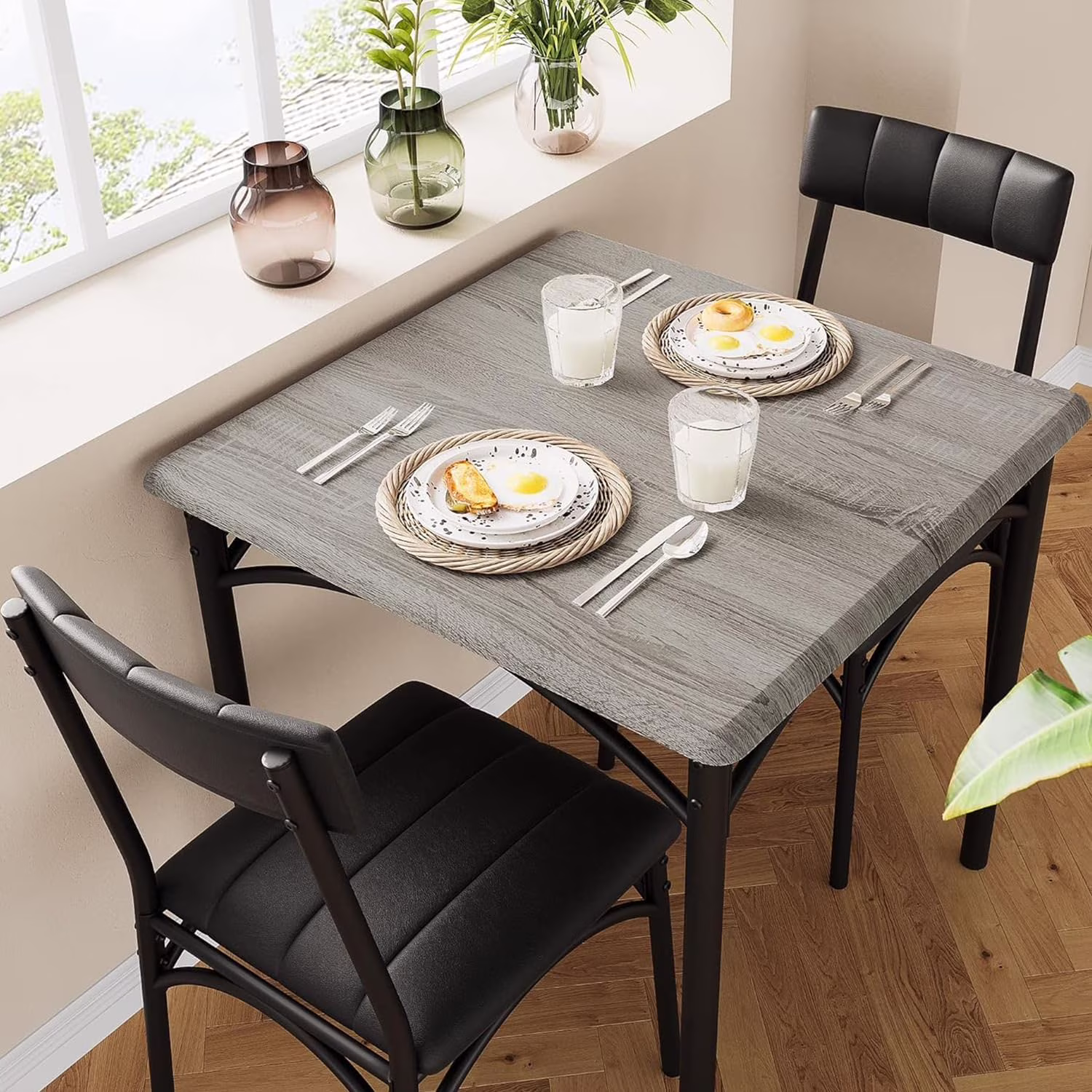 Dining Table Set for 2, Kitchen Table and Chairs for 2 with Upholstered Chairs, 3 Piece Dining Room Table Set, Square Kitchen Table Set for Small Space, Apartment, Studio