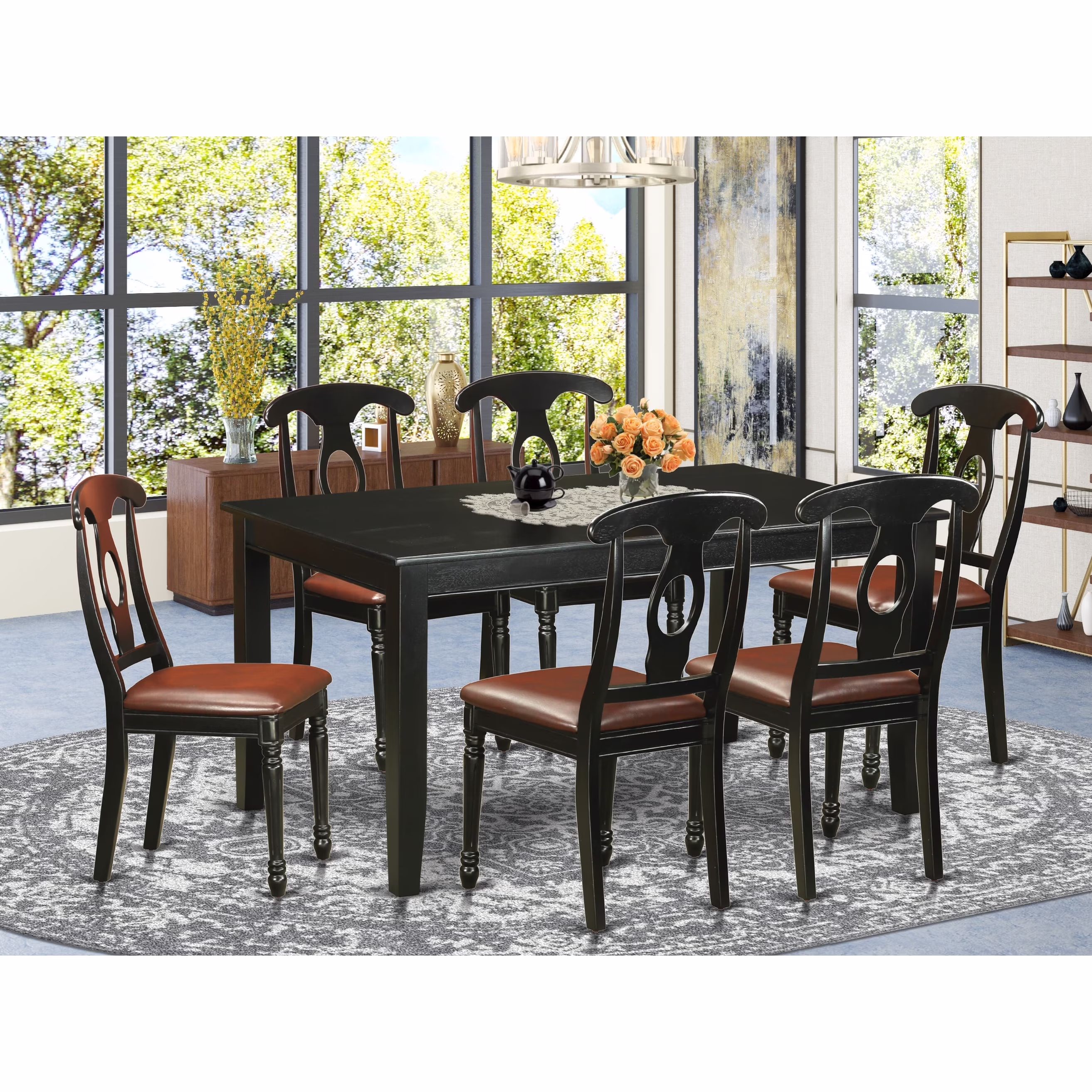 East West Furniture 7 Piece Kitchen Table Set Consist of a Rectangle Dining Table and 6 Faux Leather Dining Chairs, Black