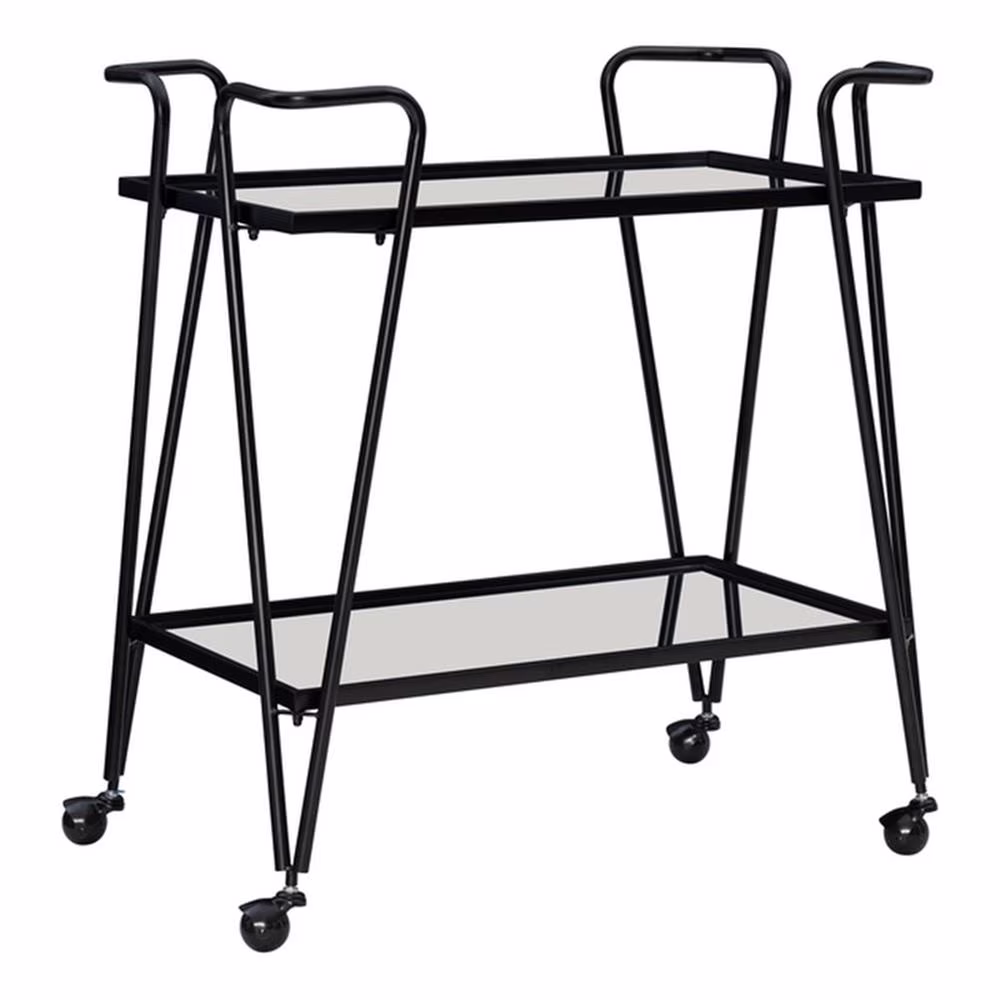 Bowery Hill Metal and Mirorred Mid Century Bar Cart in Black