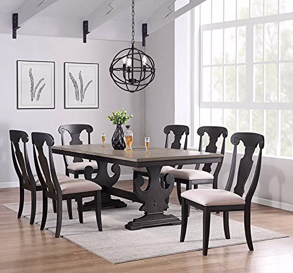 Kings Brand Furniture - Kearny 7 Piece Extendable Wood Dining Set, Table & 6 Chairs, Black/Brown
