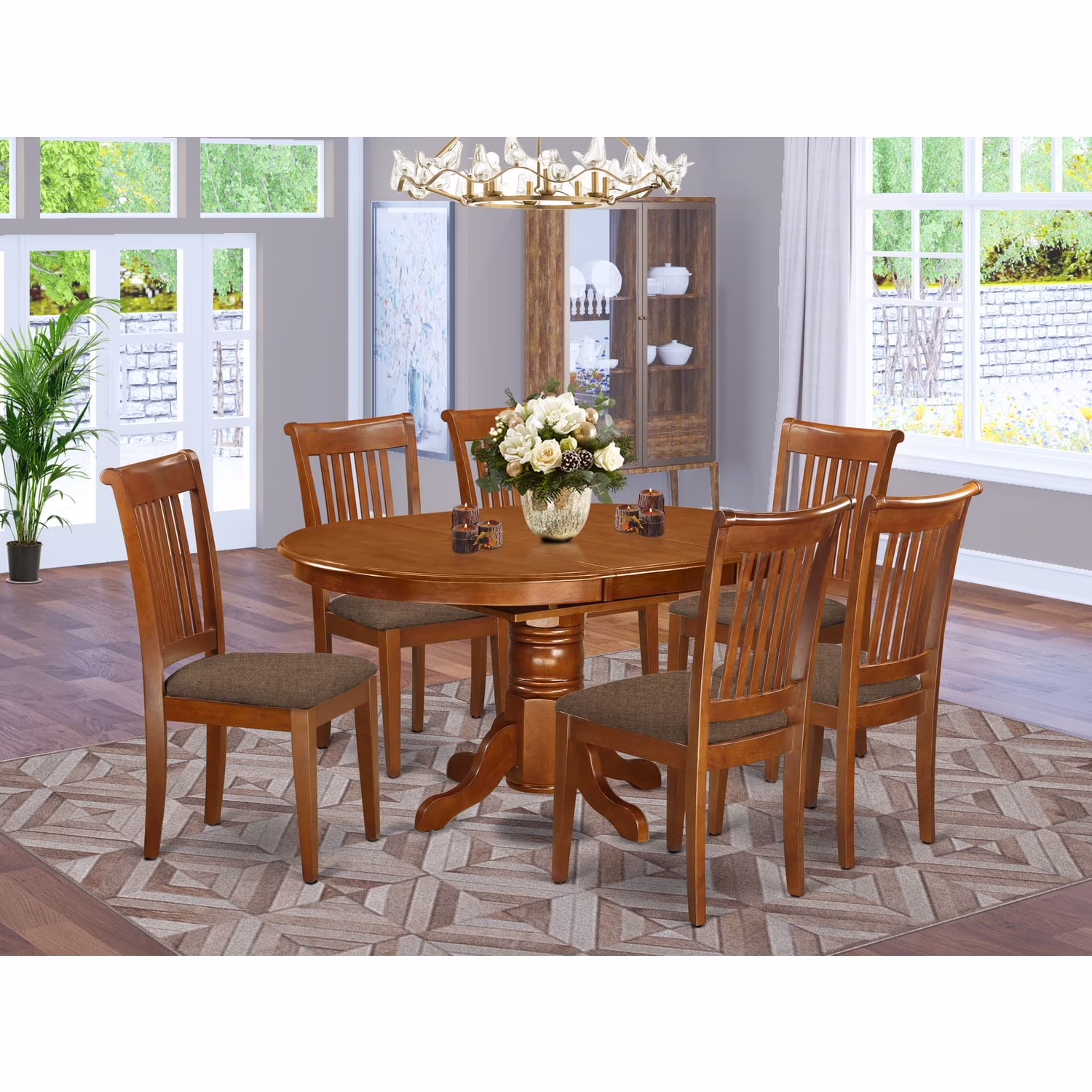 East West Furniture 7 Piece Dining Set Consist of an Oval Dining Room Table and 6 Kitchen Chairs, Saddle Brown (Seats Options) AVPO7-SBR-C