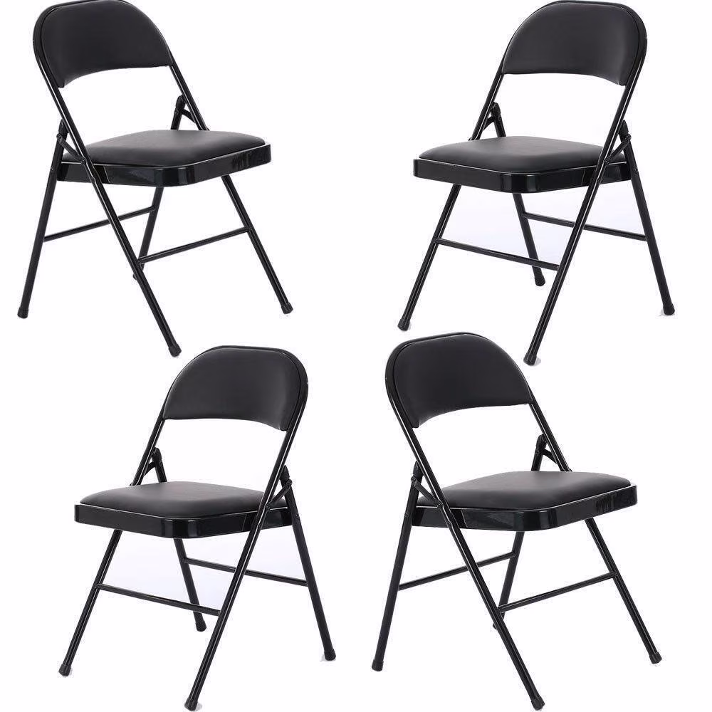 Brezey 4 Pack Black Folding Chairs with PU Padded Cushion and Back for Home and Office, Commercial Padded Folding Chairs with Steel Frame for Wedding Party Indoor Outdoor Events, 330lb Capacity