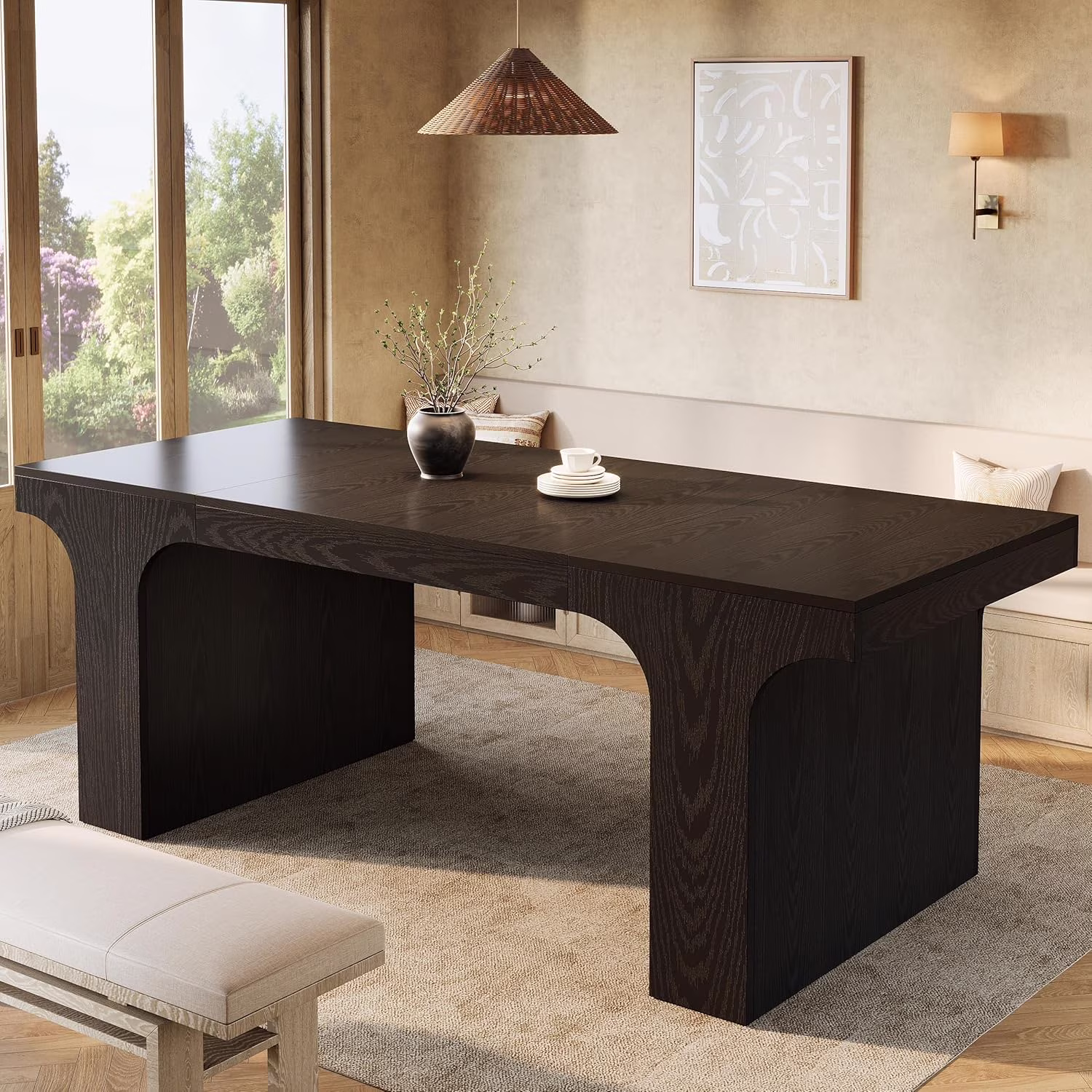 Finmind 71-Inch Large Dining Table for 6-8, Farmhouse Wooden Kitchen Table with Arched Design