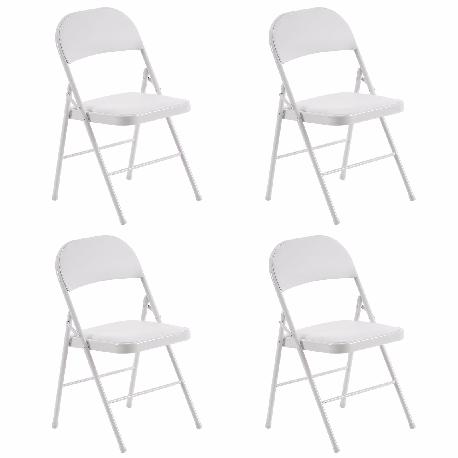 Ktaxon 4 Pack Folding Chairs Wedding Party Chair Foldable Dining Chair with Metal Frame and Soft Cushion White