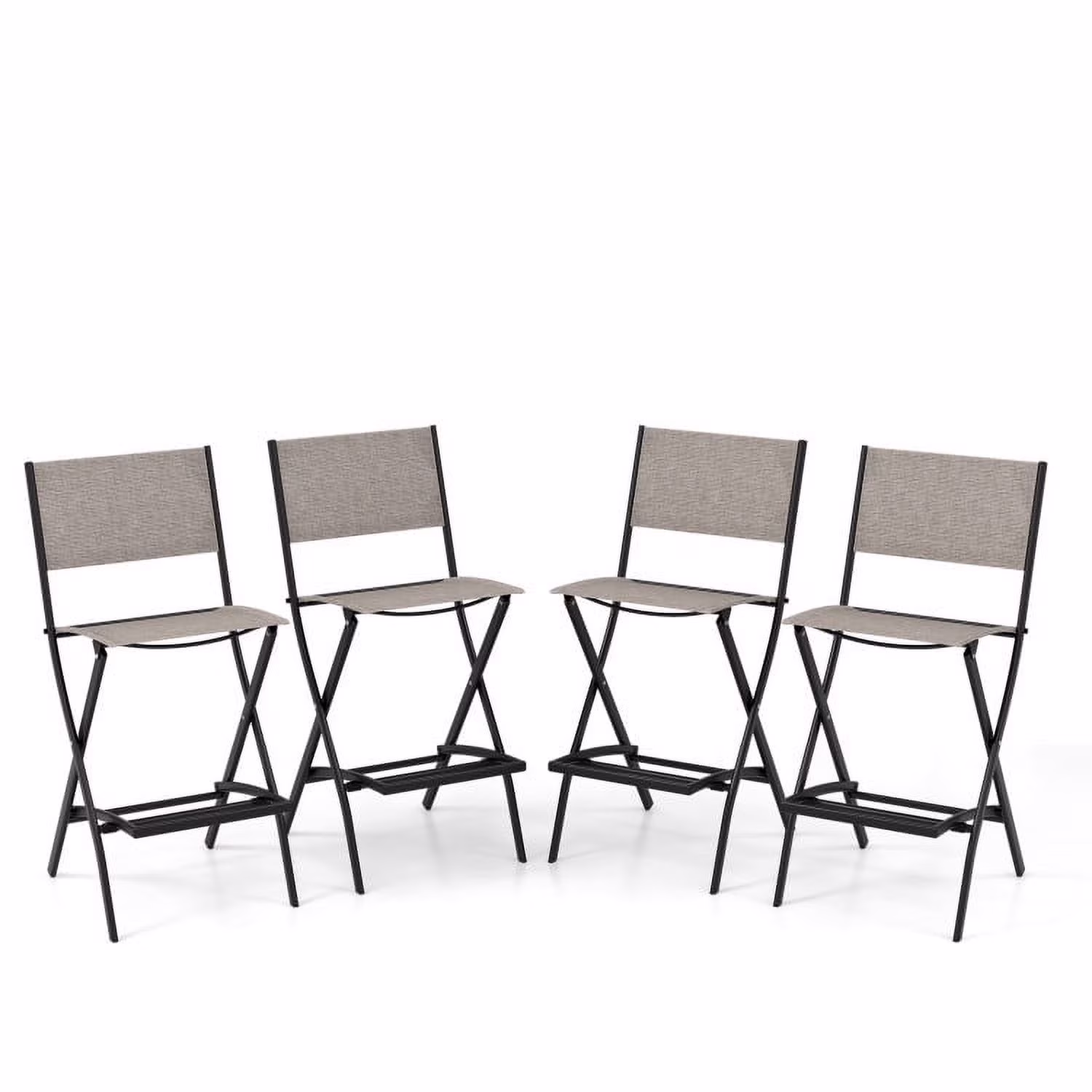 Spaco Outdoor Folding Bar Height Stool Set of 4 with Metal Frame and Footrest-Coffee, Outdoor Stackable Dining Chairs for All Weather, Breathable Garden Outdoor Furniture for Backyard Deck