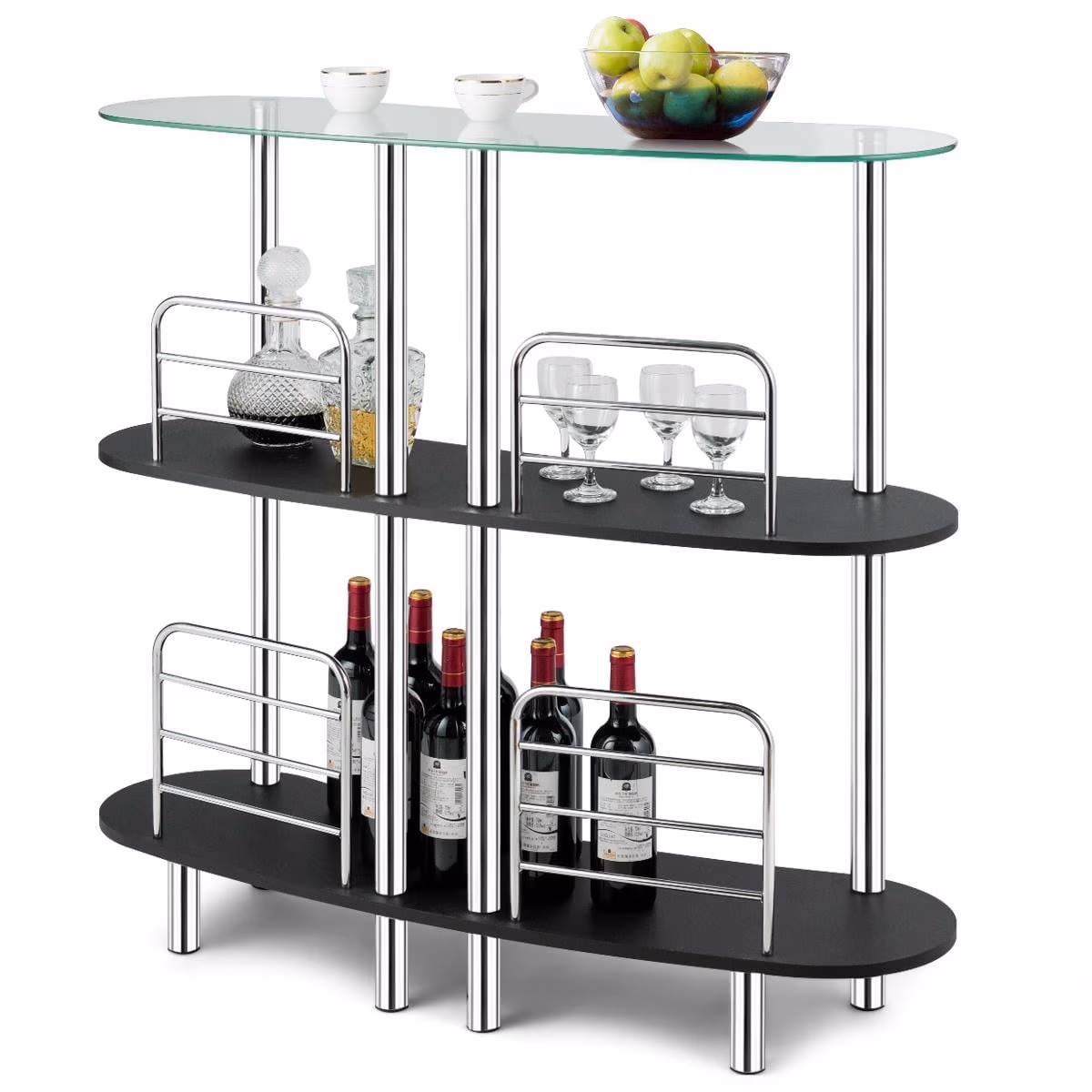Giantex 3-Tier Glass Liquor Bar Cabinets, Wine Bar Storage with Tempered Glass Counter Top and Metal Frame, Bar Unit with 2 Shelves, Bar Organize Ideal for Home/Kitchen/Bar/Pub