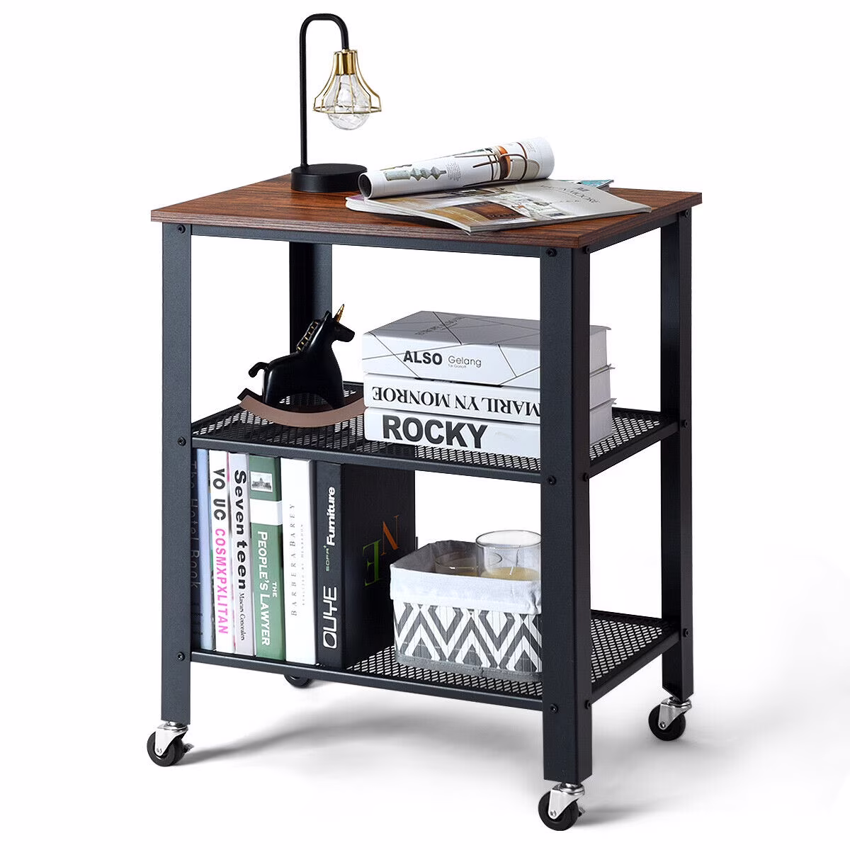 Gymax 3-Tier Industrial Serving Cart Kitchen Utility Cart on Wheels w/Storage Black
