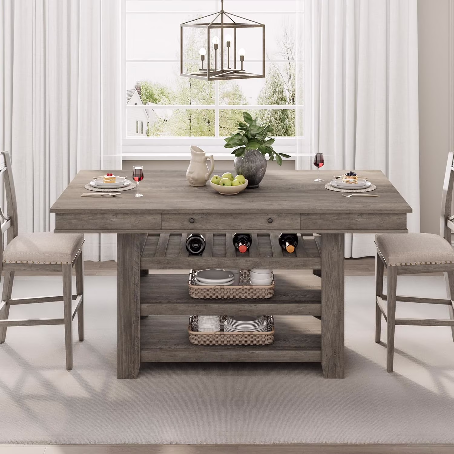 60" Counter Height Dining Table for 4,Rustic Counter Height Dining Table with Drawers& Open Shelves for Kitchen, Bar