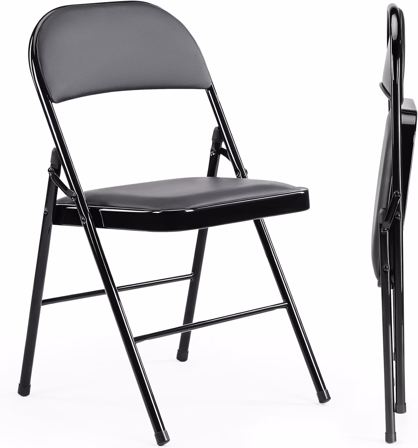 Bigleap Folding Chairs 2 Pack, PU Leather Padded Foldable Chairs with Metal Frame for Indoor Outdoor Use, Office, Party, Wedding, Black