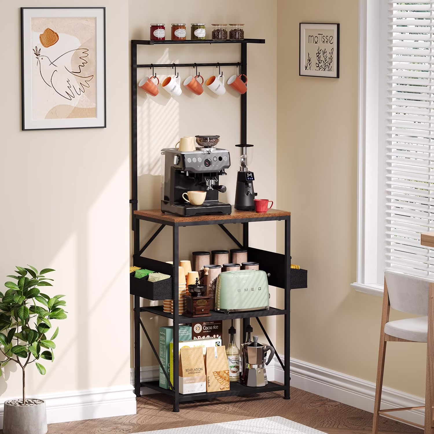 Farmhouse Coffee Bar Cabinet 23 Inch Width Storage Case,Coffee Station Bar Cabinet with 5 Hooks