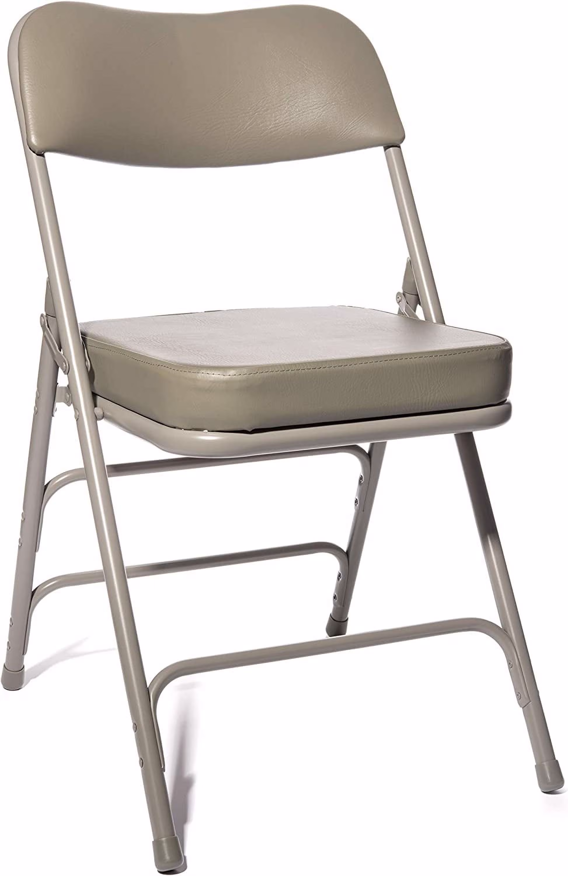 Vinyl Upholstered Folding Chair (2 Pack) - Heavy Duty Ultra Padded 2" Thick Padded Seat and Back, Triple Braced - Quad Hinging, 300 lb Tested (Grey)