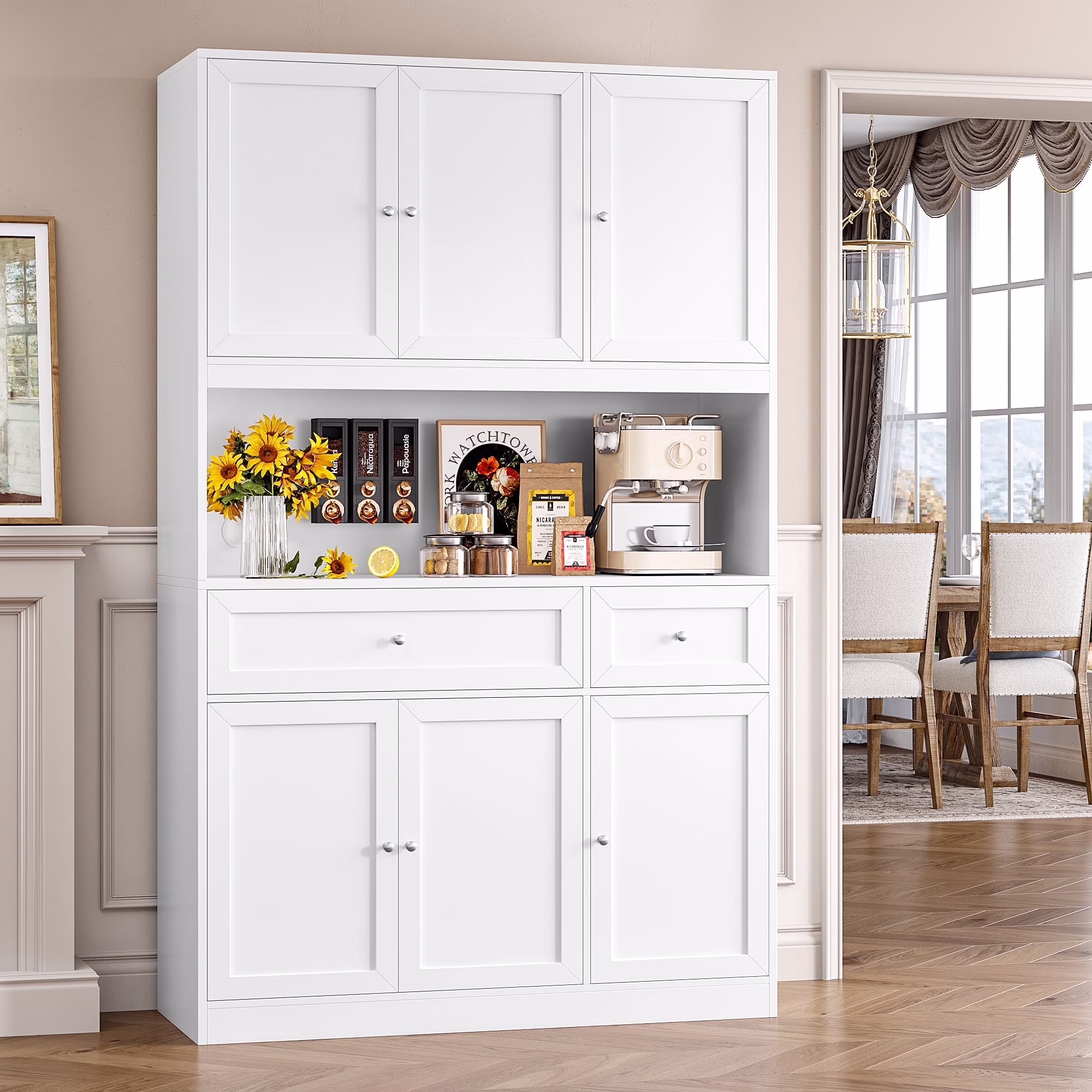 Homfa 72" Tall Kitchen Pantry with Microwave Shelf, Freestanding Kitchen Cupboard, Floor Cabinet for Dining Room, White