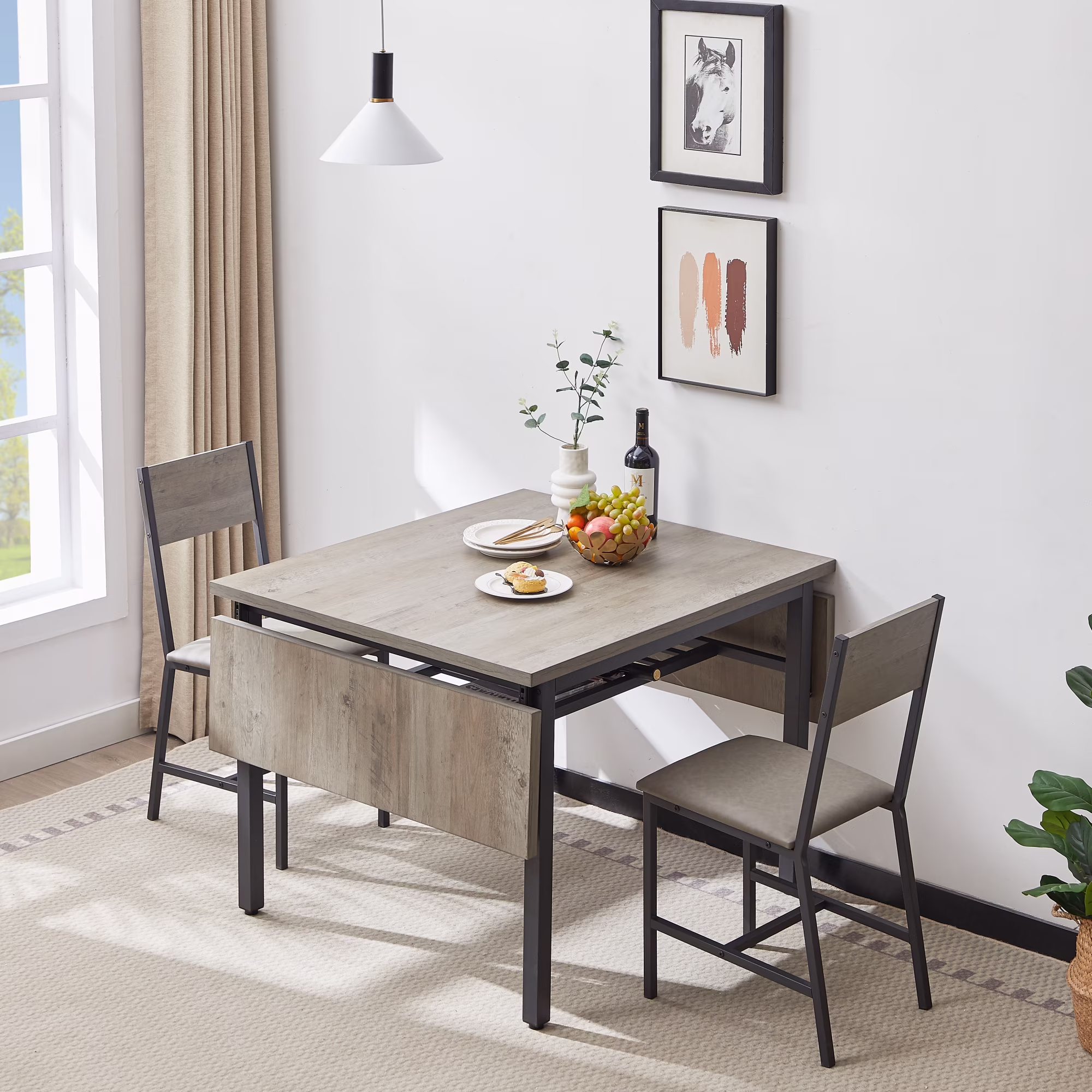 Folding Dining Table,Drop Leaf Kitchen Table for 2-6 People,Extension Dinner Table for Small Spaces,63.2'' L x 35.5'' W x 30.5'' H,Gray