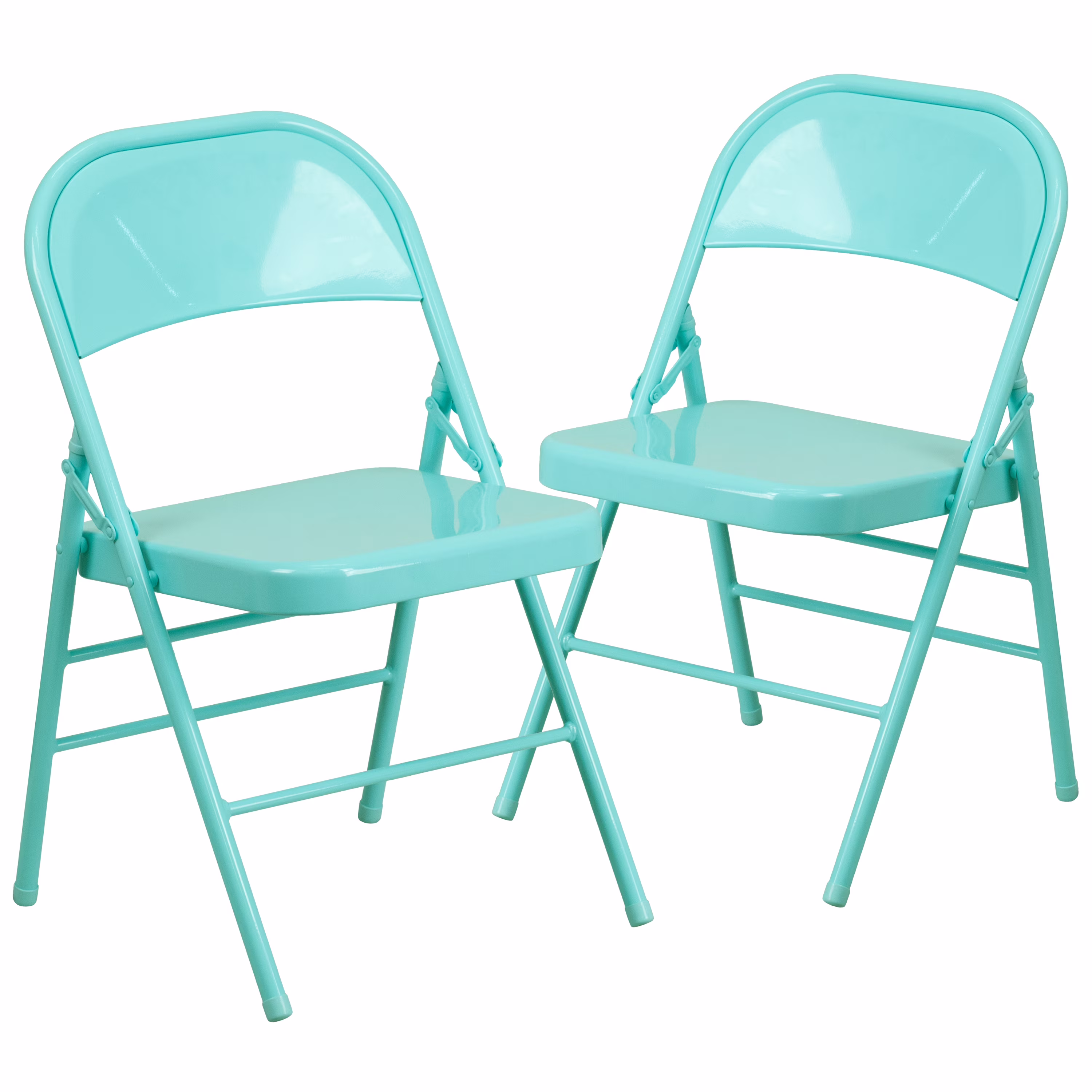 Flash Furniture 2 Pack HERCULES COLORBURST Series Tantalizing Teal Triple Braced & Double Hinged Metal Folding Chair