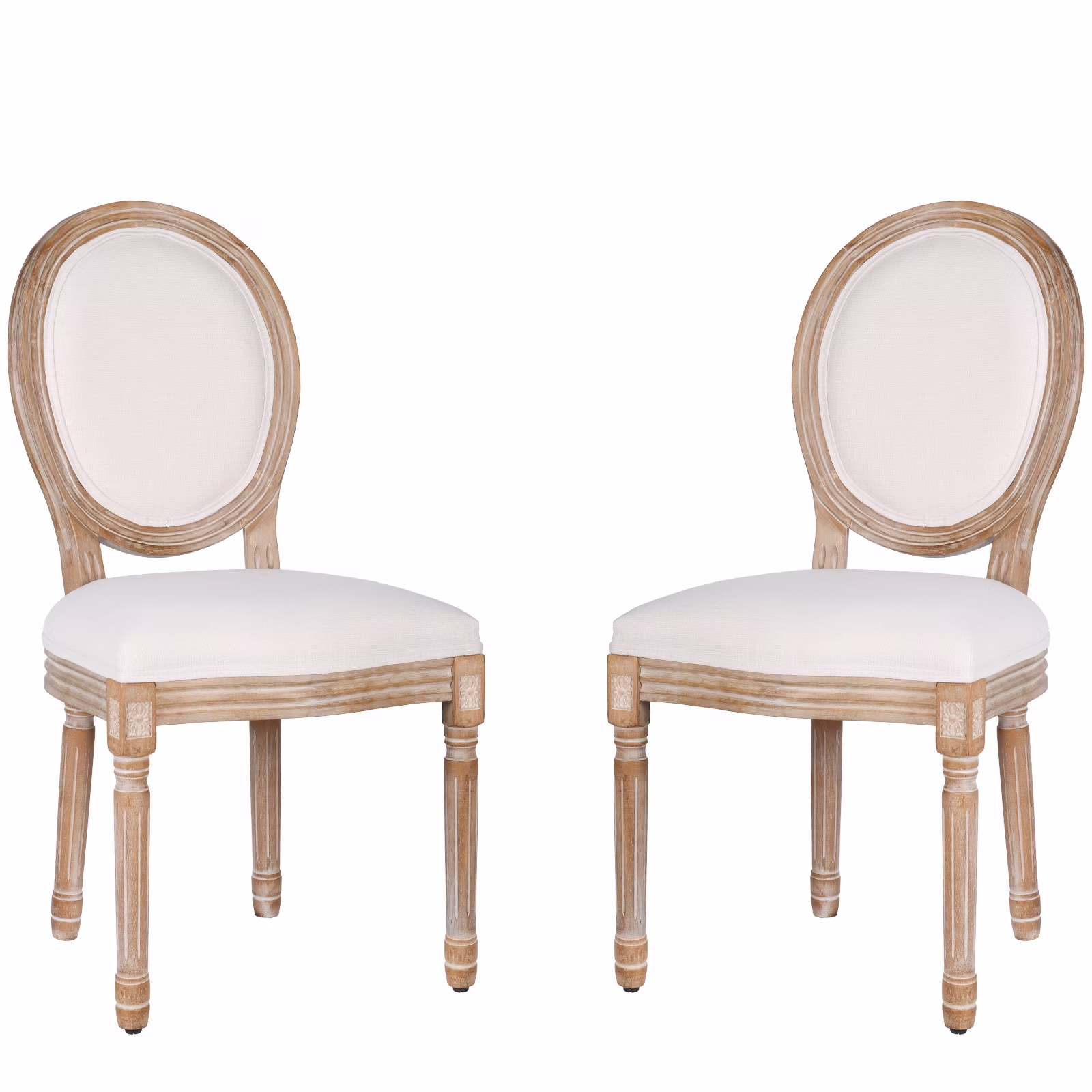French Dining Chairs Set of 2 Beige Natural Fabric Round Back with Solid Wood Legs and Frame for Bedroom Dining Room Kitchen