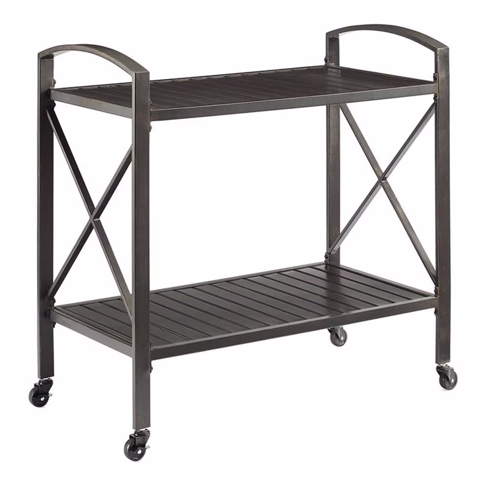 Afuera Living Contemporary Metal Outdoor Bar Cart in Oil Rubbed Bronze