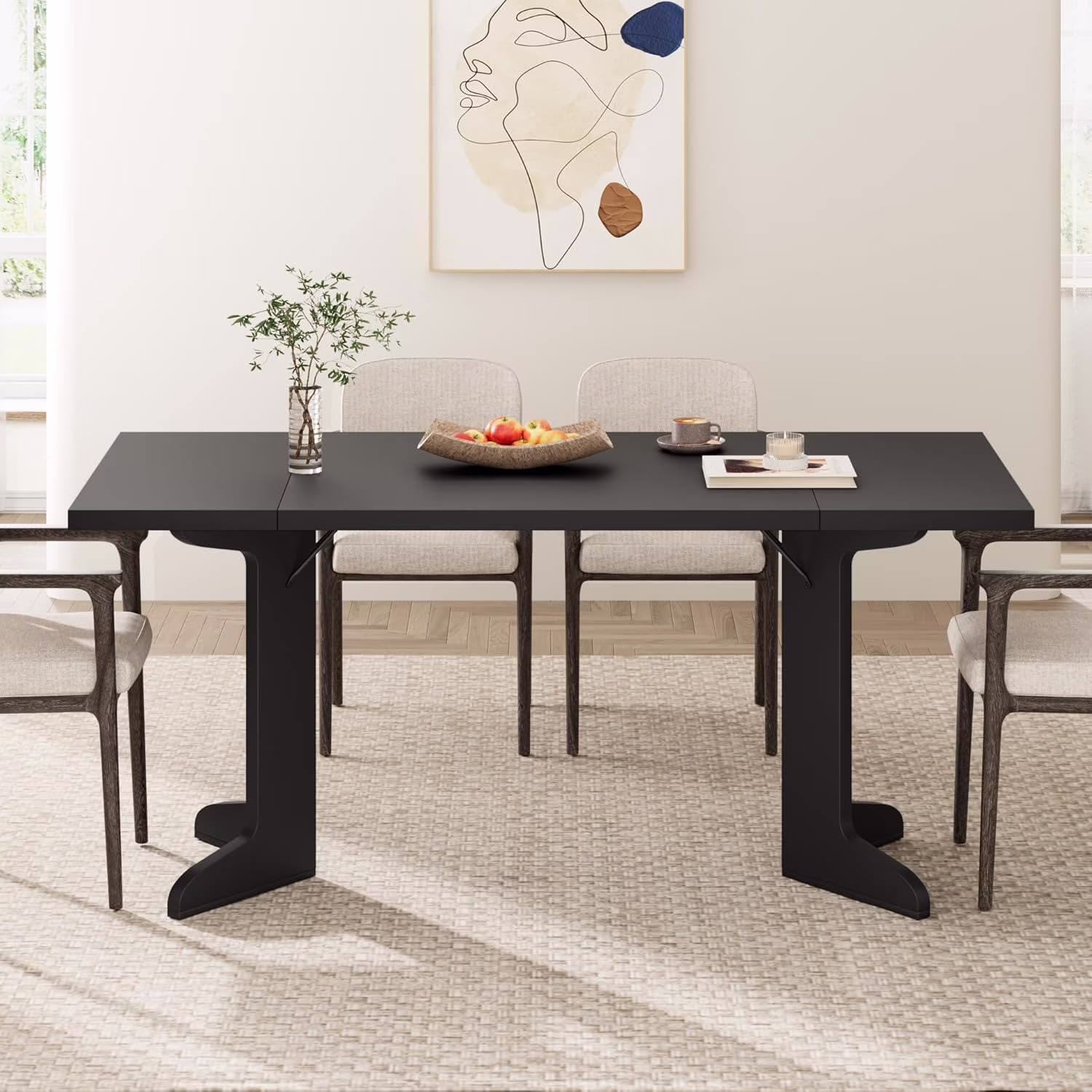 71" Large Dining Table for 6 to 8 People, Modern Dinner Table with Unique Wooden Legs, Rectangle Dining Table for Kitchen, Dining Room & Living Room, Black