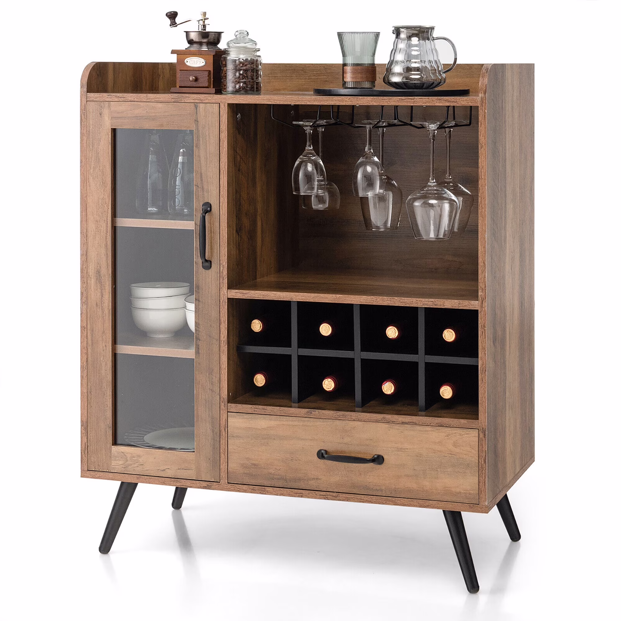 Gymax Liquor Bar Cabinet Storage Buffet Sideboard Credenza w/ Wine Rack & Glass Holder