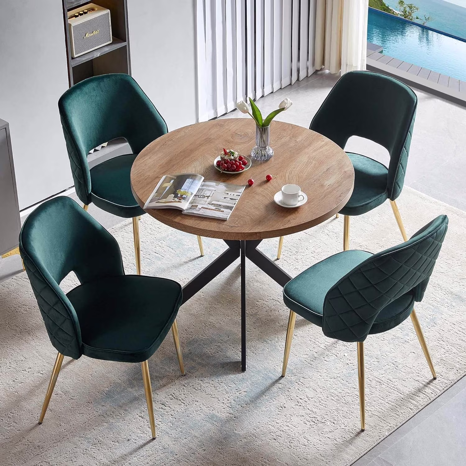NORDICANA 5-Pieces 37-Inch Dining Table Set for 4 - Space Saving Round Table and Chairs with 4 Seaters Velvet Upholstered Chairs