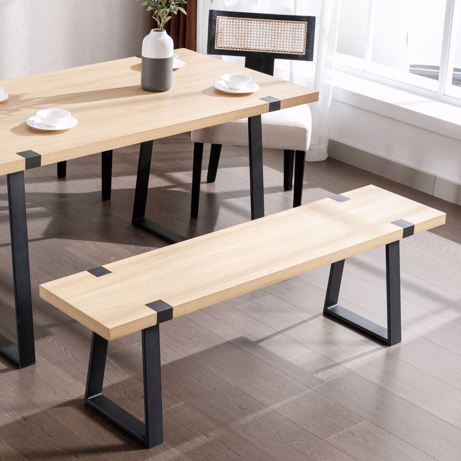 Dayalane Modern 60" Dining Bench with Metal Legs, RectangleWooden Kitchen Bench for Dining Room Living Room, Sturdy Indoor Seating,2-3 Person,Black